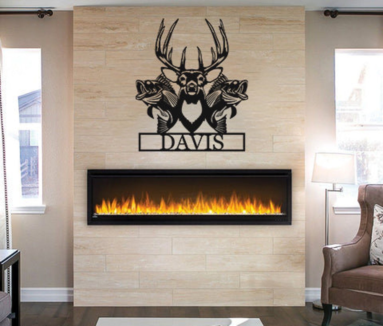 This Custom Buck and Bass Monogram is fully customizable. Just let us know what name you would like and we will do the rest. It is cut from 100% Steel and is powder coated black so it will never rust. Use indoors or outdoors. Made in the USA!