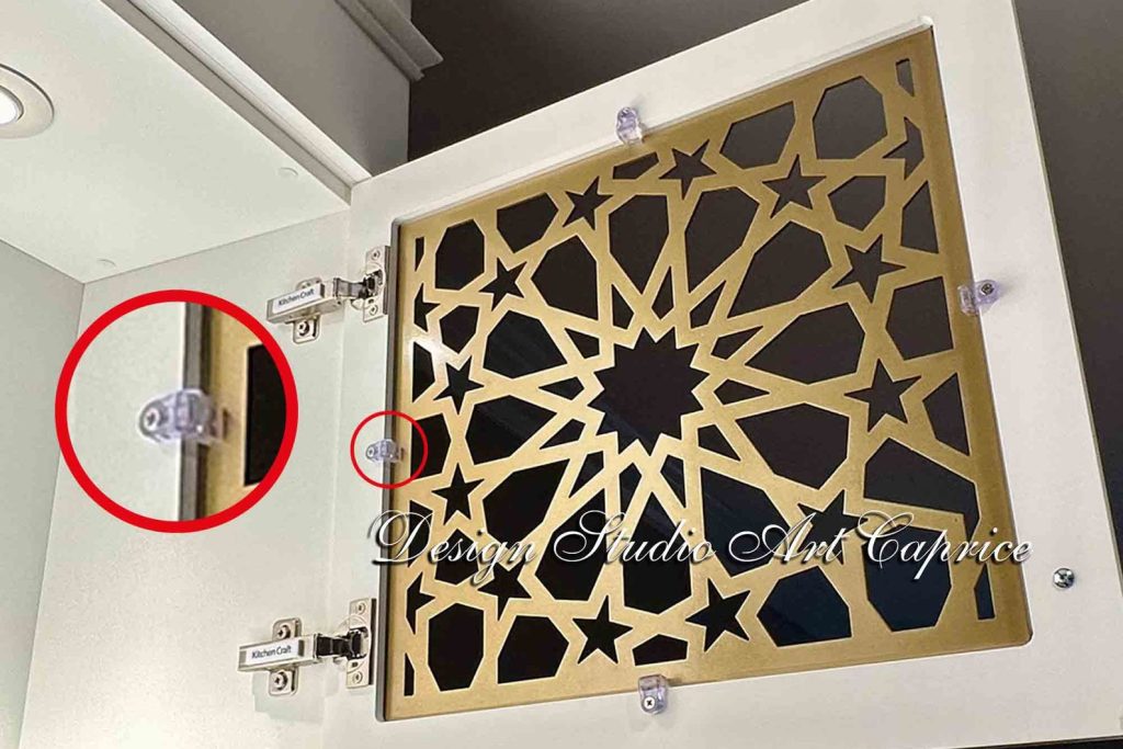 If you are looking for a custom metal cabinet mullion door insert production for your cabinet glass door you can choose any design created by Design Studio Art Caprice for a new sophisticated look of your kitchen/wine cabinet glass doors. Compared to other materials, metal mullion inserts possess a much more luxurious look. It will last for long years as a beautiful part of the interior design.