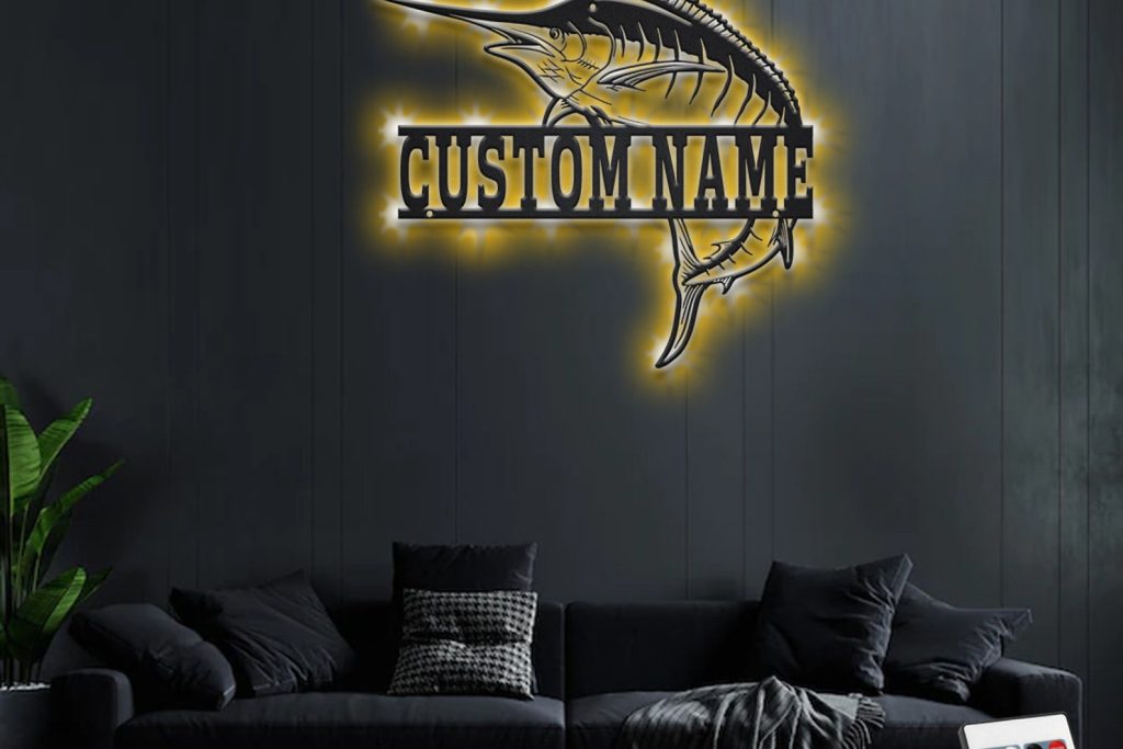 Custom Marlin Fish Metal Wall Art – LED Light, Fishing Decor