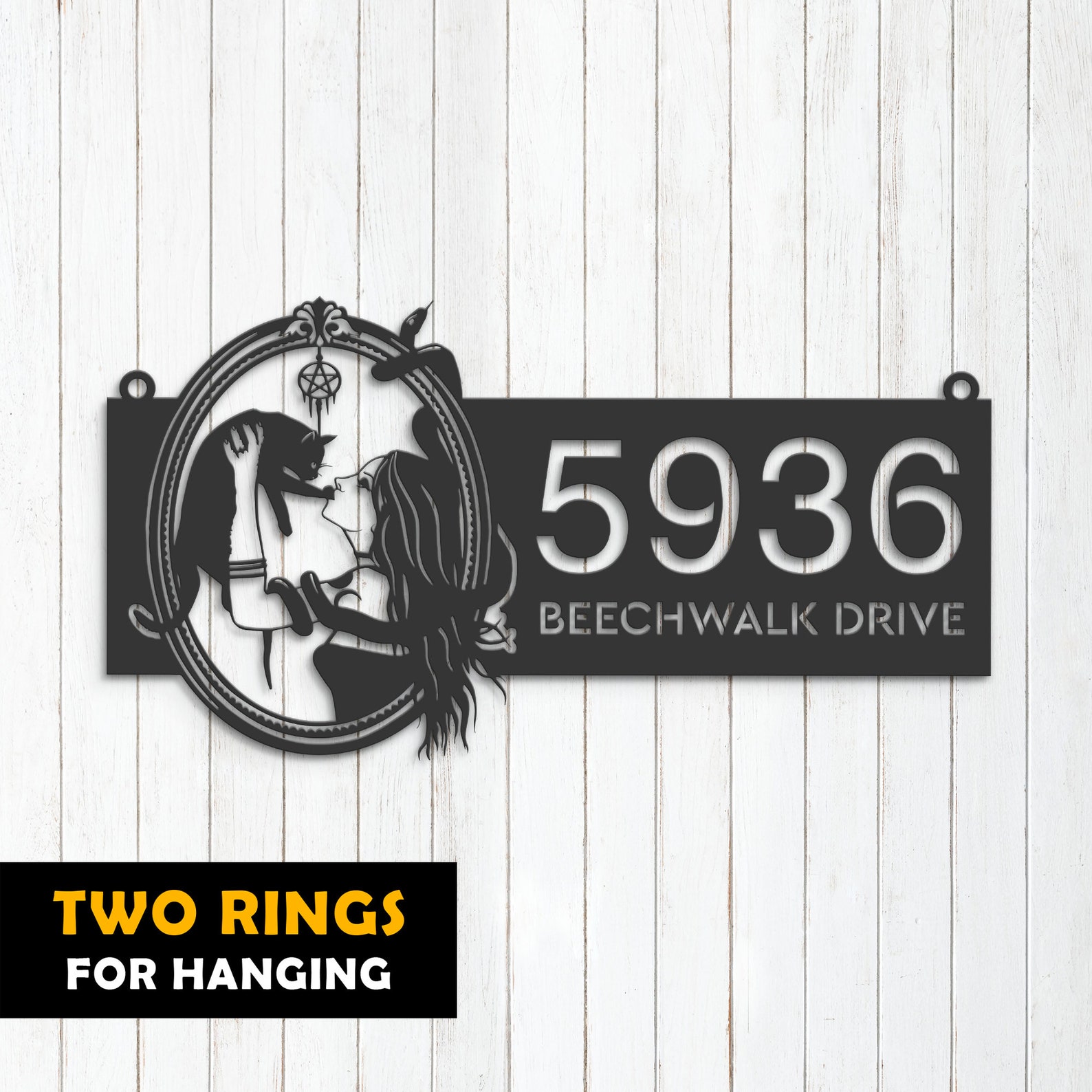 Be the first to review “Personalized Witch and Black Cat Metal Address Sign – Halloween Decor”