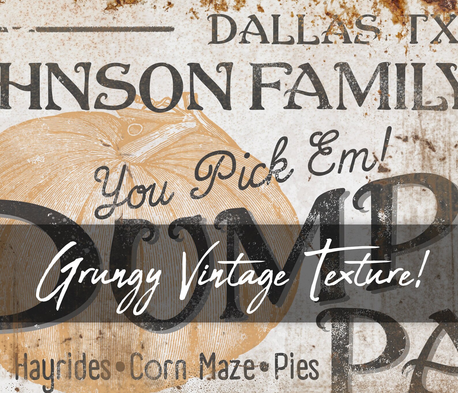 The rustic and weathered textures you see in the artwork will look the same no matter what item you order on. That means metal, wood, and canvas all have the vintage look to them!