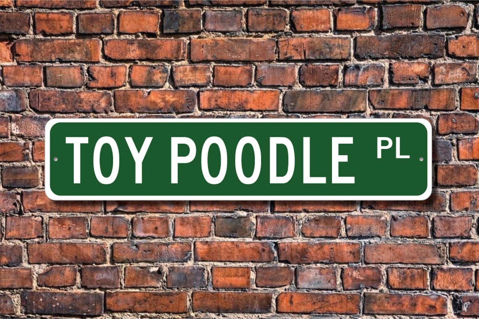 Toy Poodle lovers check out this awesome street sign! This will make the perfect piece for any Toy Poodle lover or Toy Poodle cave. Made of premium aluminum it will stand the test of time. This sign will look great in any room, garage, barn or office! Get this sign for your favorite friend that loves a Toy Poodle !