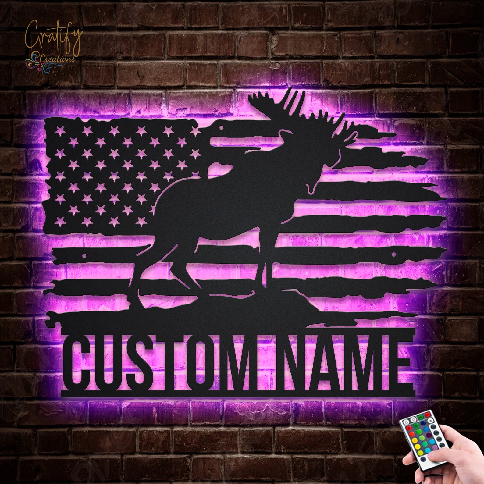 Be the first to review “US Moose Sign, Personalized LED Decor”
