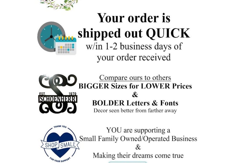 18 INCH DECOR – Perfect size for front doors of townhomes, condos and apartments – empty space beside your front door – patios – eaves – pool areas – barns/workshops – gates and attaching to the front of wreaths. Great gifts for new couples – first homes together – engagements – birthdays – special occasions – and just because.