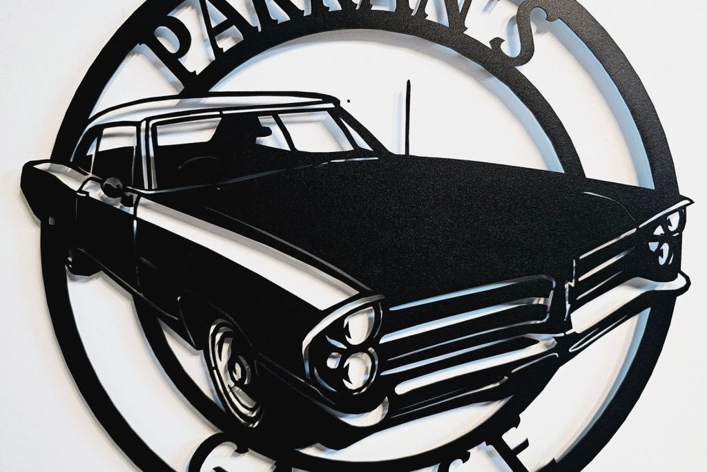 After purchase your order goes through our cutting process where it is designed, programmed, then precisely cut by our top of the line Craftsens fiber lasers. Me then make sure the metal is properly cleaned & cut before going to the next step. Now that the sign has been cut, cleaned it can now go through our powder coating system where your sign is hung and ran though our automated powder line so your sign comes out looking perfect.