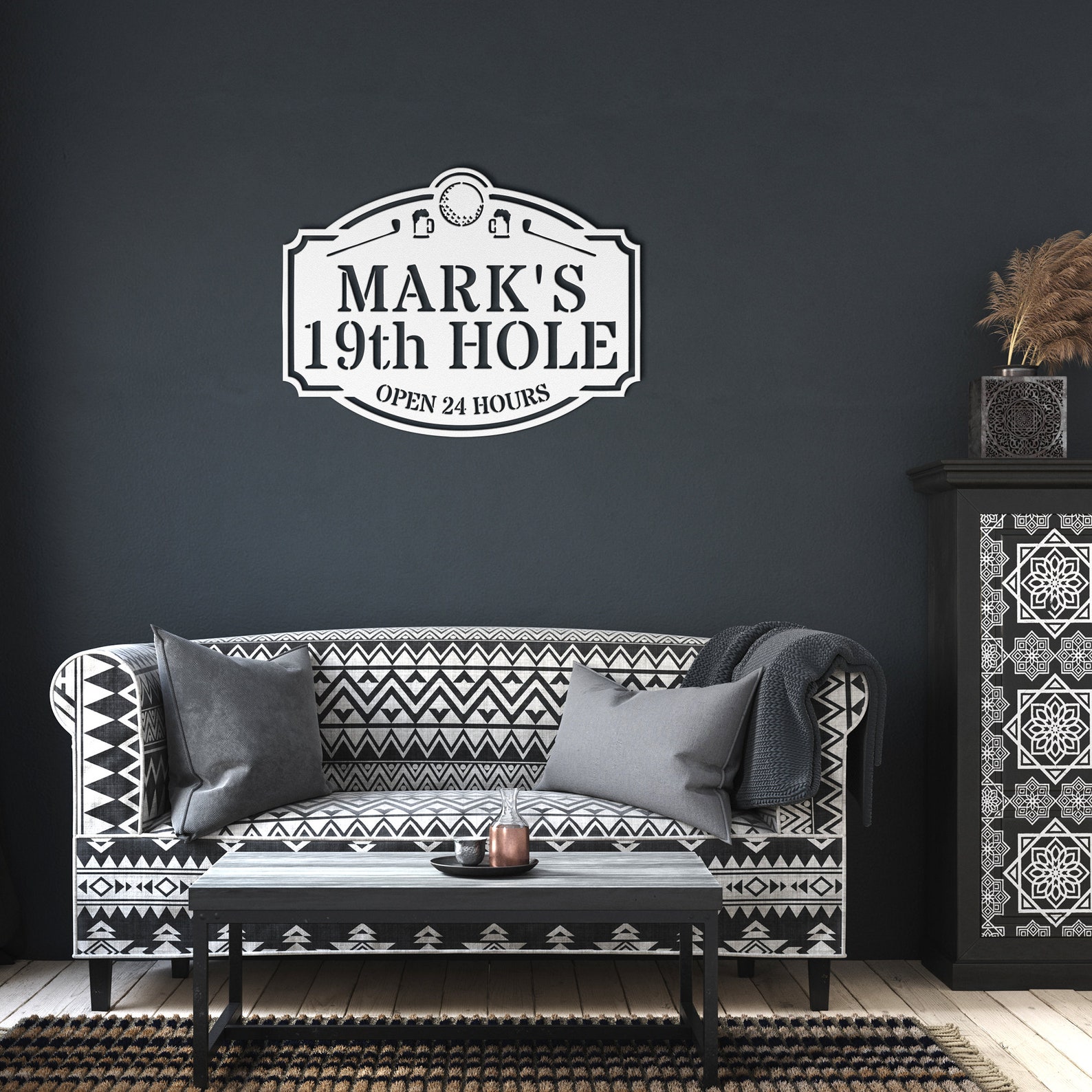 Elevate your home bar with our personalized Golf-themed sign. Crafted with attention to detail, this stylish metal sign can be personalized with your name or message to make it truly unique. Perfect for avid golfers and enthusiasts, this sign adds a touch of sophistication and charm to your home bar, inviting friends and fellow golf lovers to gather and enjoy drinks in a rela and inviting atmosphere. Swing into style with this custom-made masterpiece.