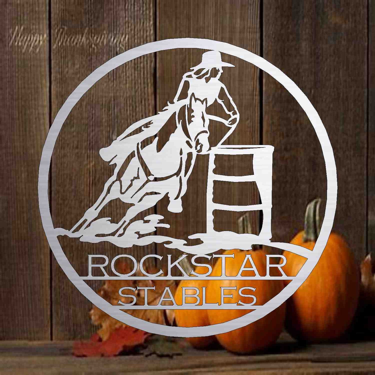 this is a 36" custom barrel racer sign it can be made larger just let me know how big it is powder coated made from 10ga steel heavy steel