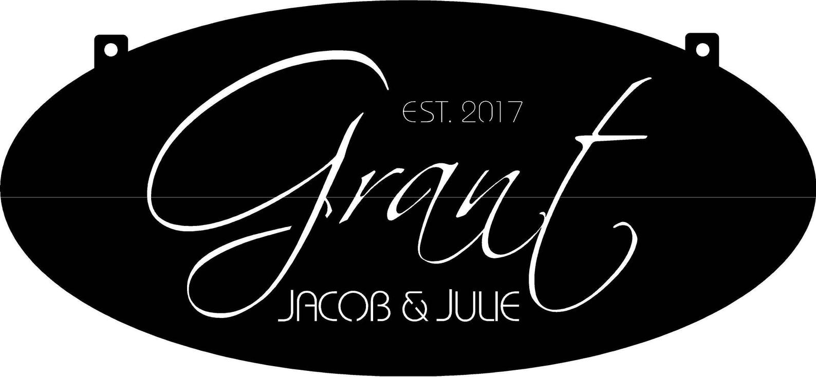 Rustic, personalized metal sign . Measures 36" x 16.5". Auburn acid wash with clear coat or Powder coated in black texture . Makes a very attractive entrance sign.Incl with the price is customizing with your name.Our finish is a baked on powder coat for a very long lasting durable finish.