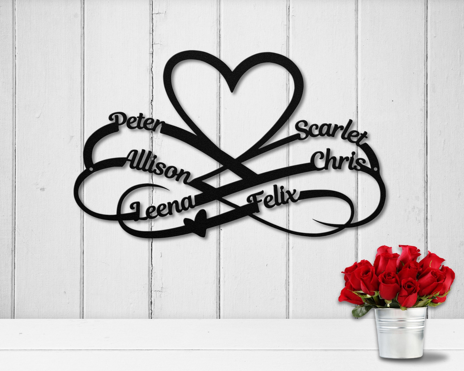 Be the first to review “6 Names Infinity Heart Metal Sign – Perfect Family Name Sign”