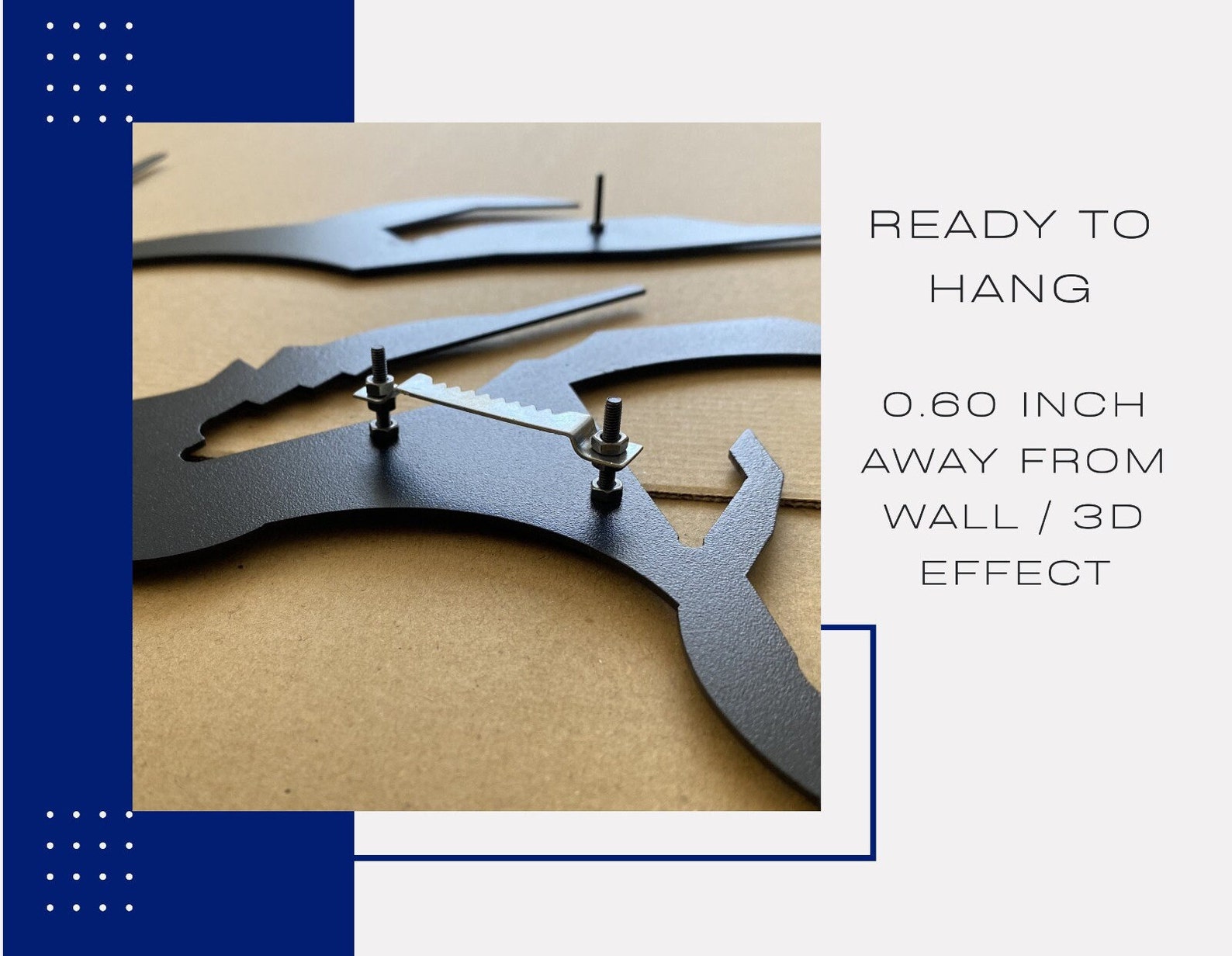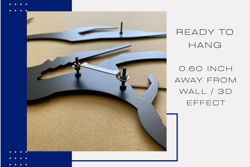 Material : Crafted from durable 1.5 mm steel, coated in a textured black static paint boasting a smooth matte finish. The item, designed with a captivating 3D shadow effect, extends 0.60 inches from the wall. Its robust construction allows it to withstand moisture-rich surroundings, making it suitable for areas like kitchens, bathrooms, and even outdoor spaces.