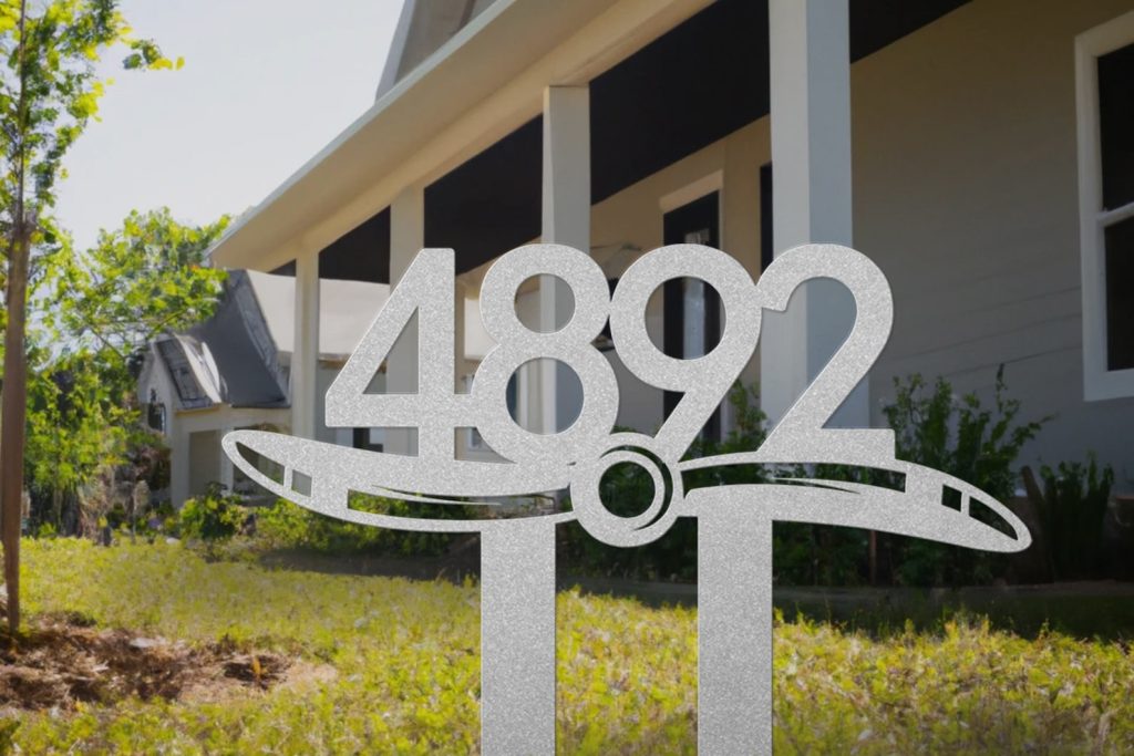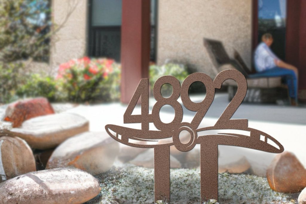 Airplane Propeller Metal Address Sign with Ground Stakes