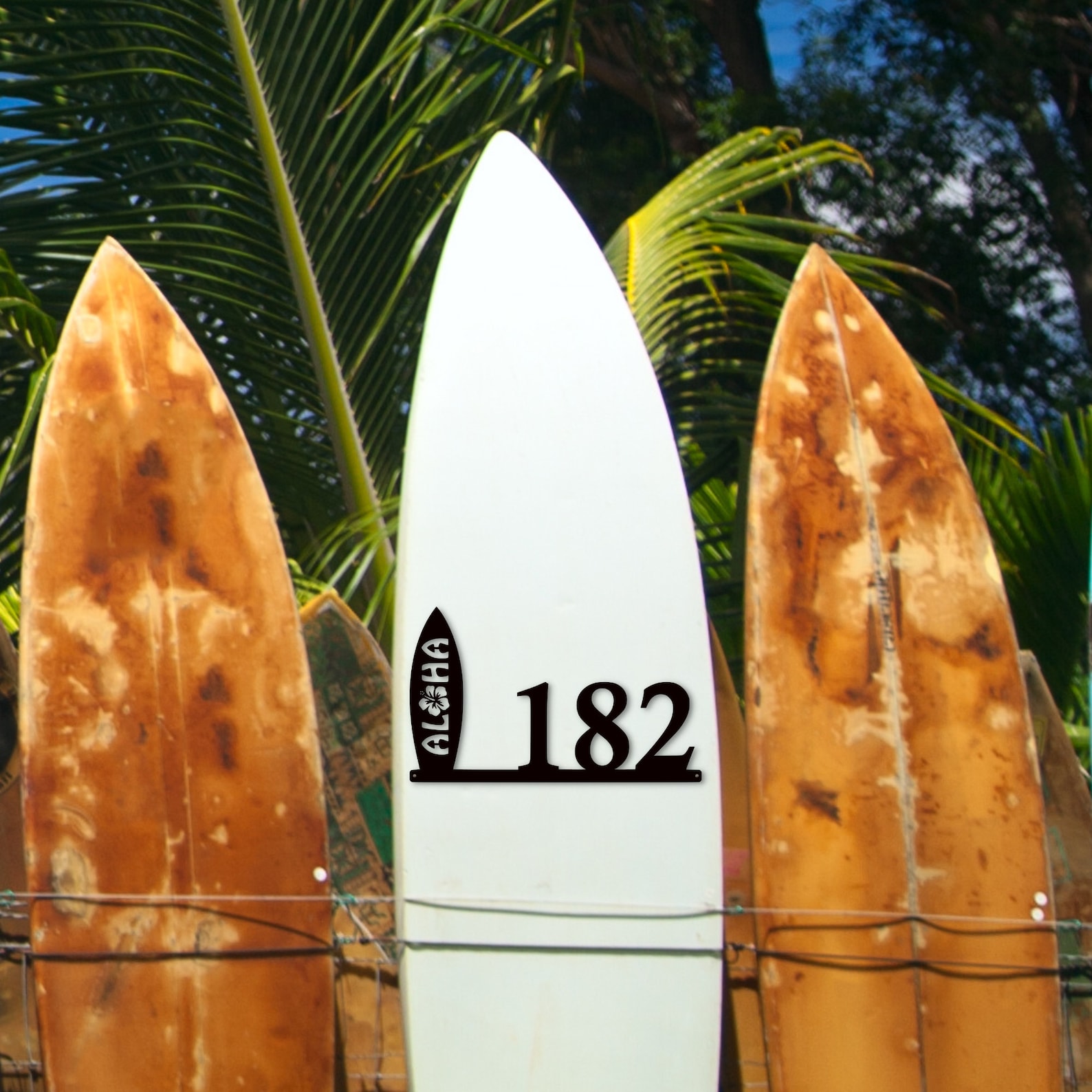 Personalize your home and welcome guests with this custom aloha surfboard house numbers sign. Just the island vibe you have been looking for! These popular signs also make fantastic gifts for friends and family for weddings, birthday, anniversaries and housewarming!