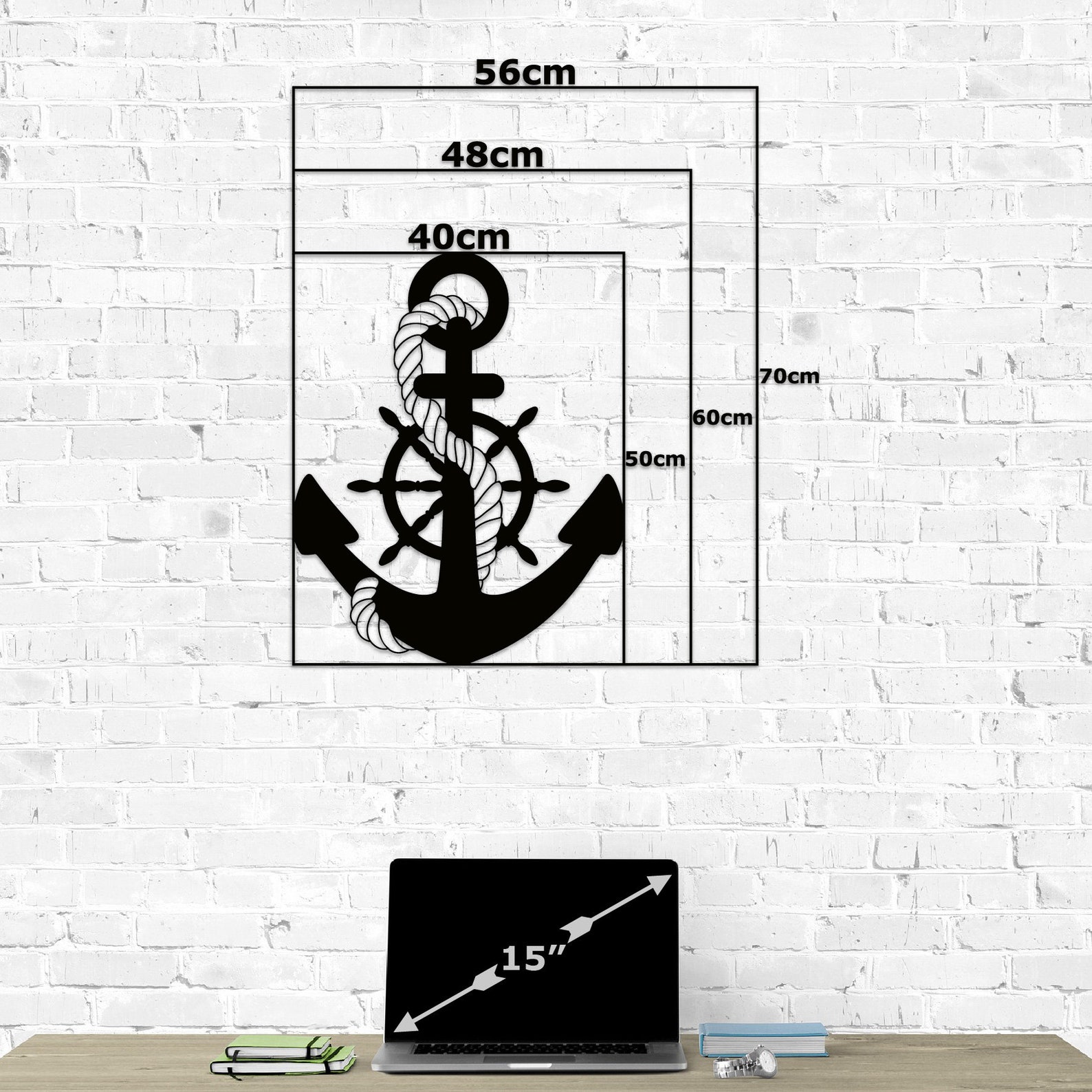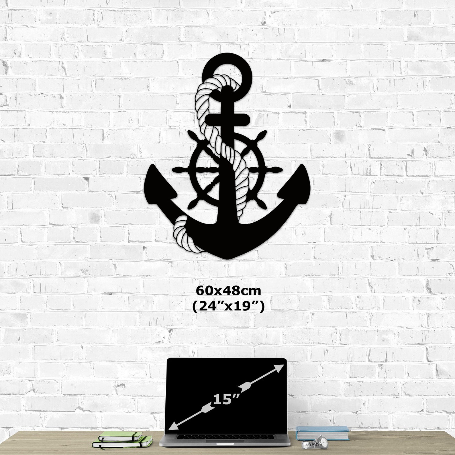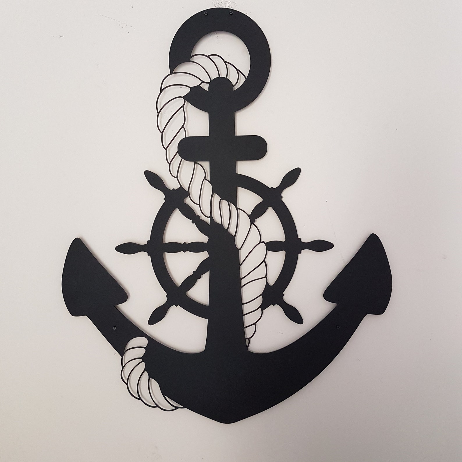 Add a touch of nautical charm to your home or office with this beautifully crafted Anchor Metal Wall Art. Made from 0.08" thick iron sheet, this laser-cut wall decor features an intricate design of an anchor, rr, and rope, perfect for those who love the ocean and ships. The black color and Art Deco style make it versatile for any room in your home, whether it be your office, kitchen, bedroom, living room, or dining room. This wall decor is a unique addition to your home. Anchor Metal Wall Art is the perfect piece to showcase your love for the sea.
