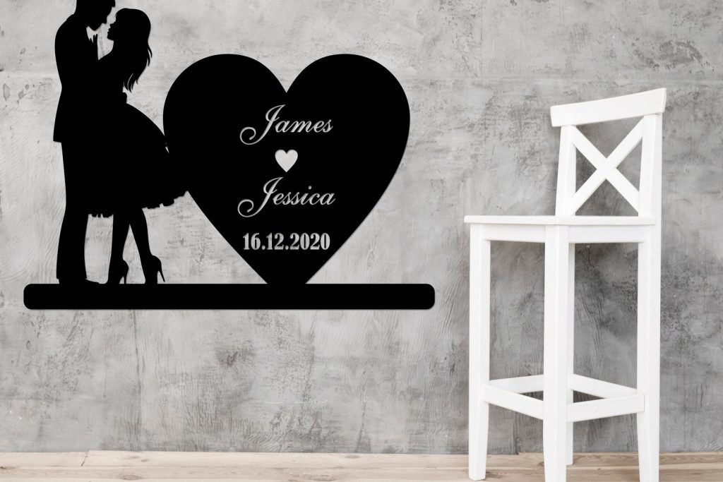 Anniversary & Wedding Gift: Custom Heart Sign with Names & Date