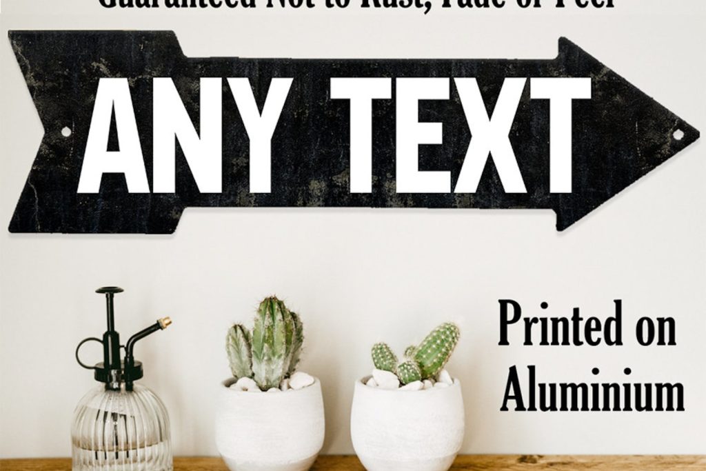 Be the first to review “Any Text Arrow Personalized Metal Sign – Vintage Looking Directional Sign”