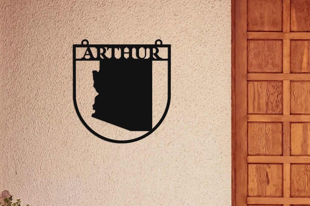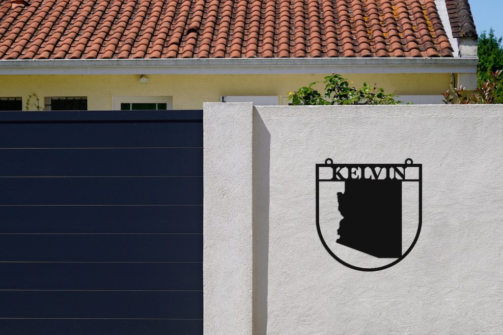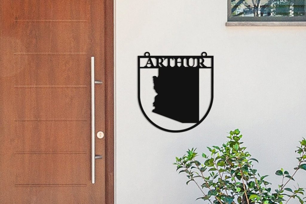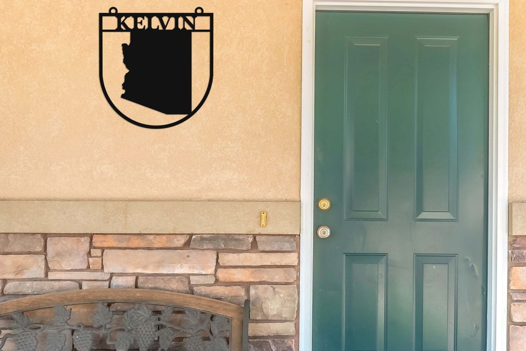 This custom Arizona State Sign is a great way to customize your home with customizable metal sign. Add your family name, Arizona state lines or house number to this unique design.