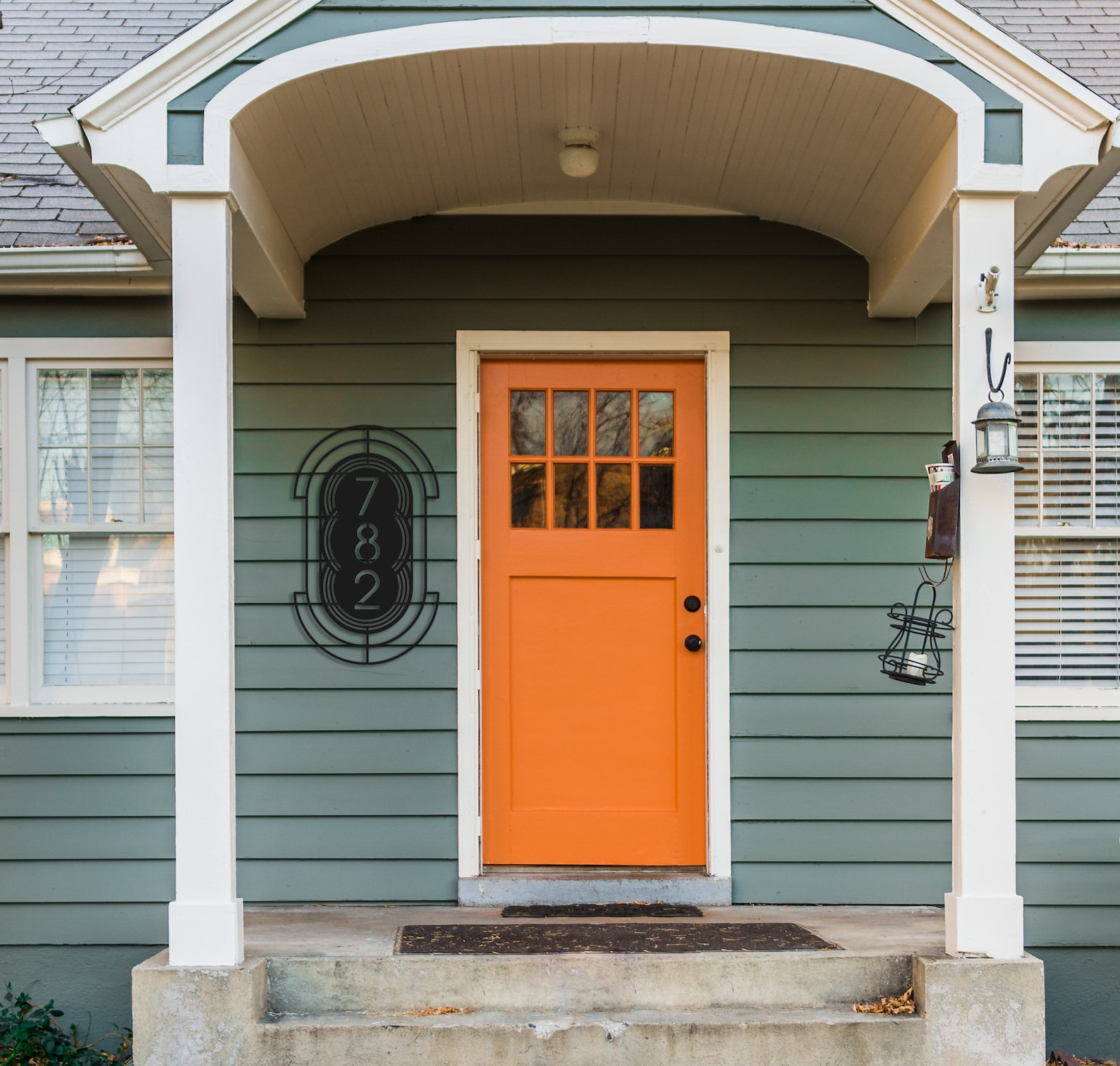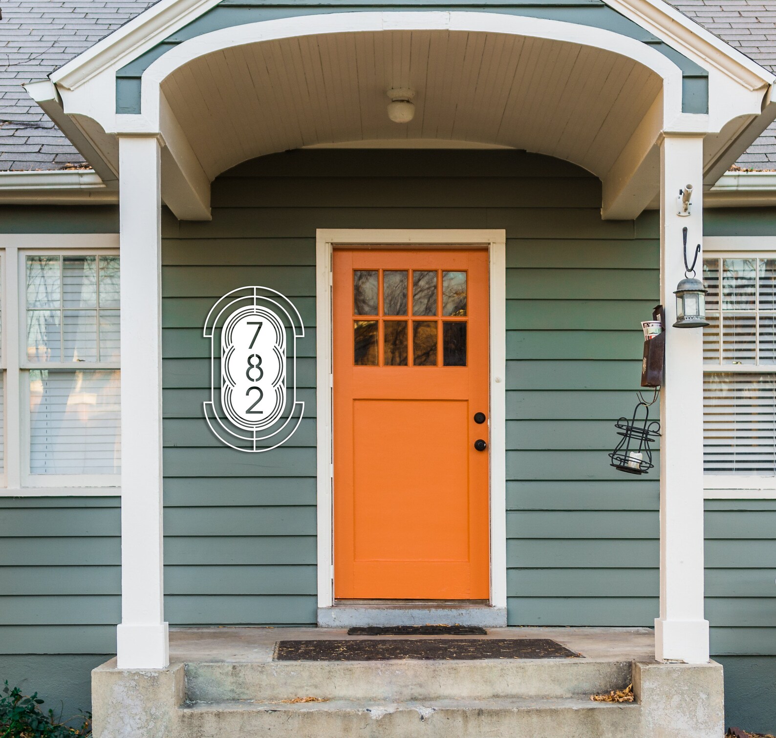 House numbers with extra expression, this one has your number surrounded by bold Folk filigree. I am an artist and designer and I designed these in Adobe Illustrator at home (cat by my side). After you place your order I will send you a mock up so you can see how your words look in the design. Upon approval I will send the file off to Teelaunch, my production partner, where they will cut your sign out of 18 gauge steel and powder spray coat it so it ends up feeling sort of like cast iron but it9;s much thinner, a little thinner than a quarter but strong. Their production time is 5-7 days which means that you should receive it in about 10 days unless it9;s holiday rush time in which case it will probably be 2 weeks.