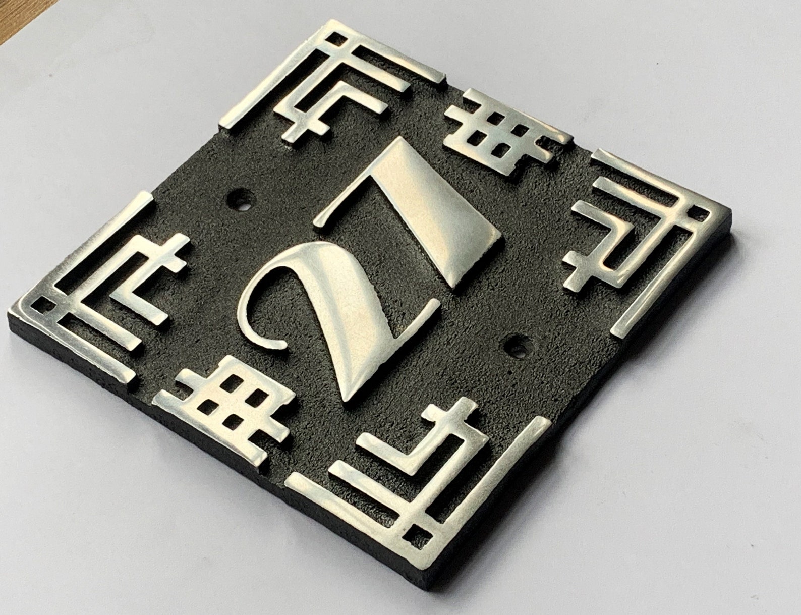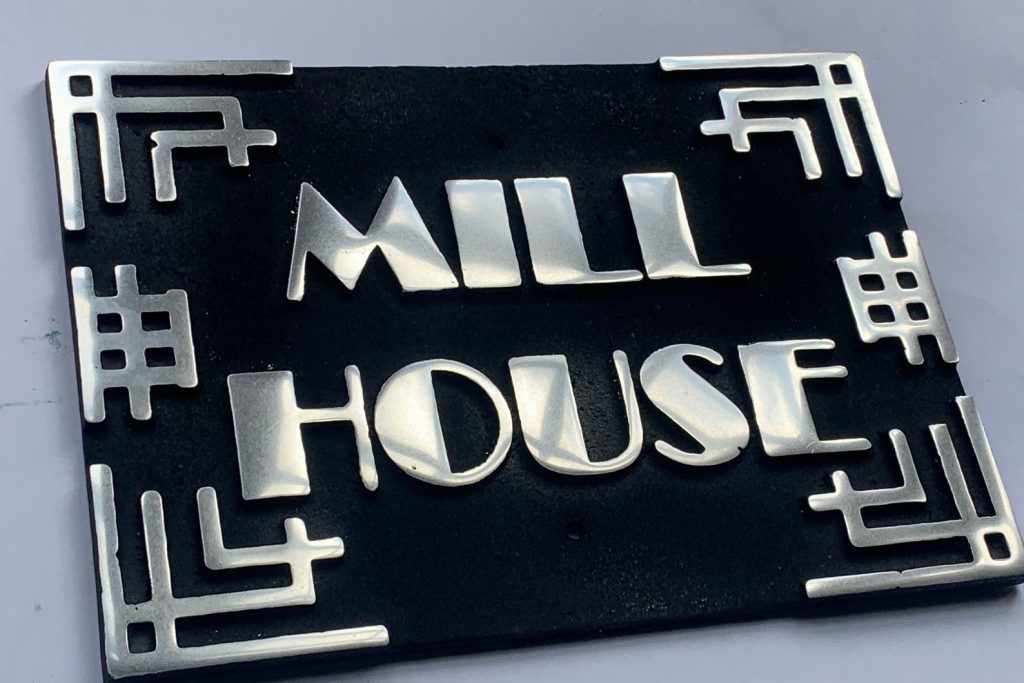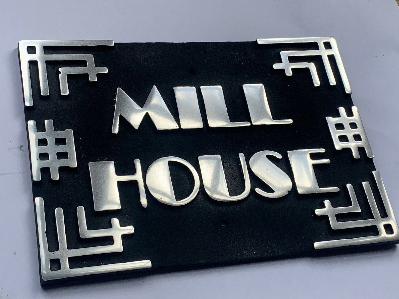 Art Deco Oval Aluminum House Name and Number Sign
