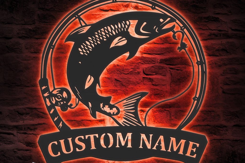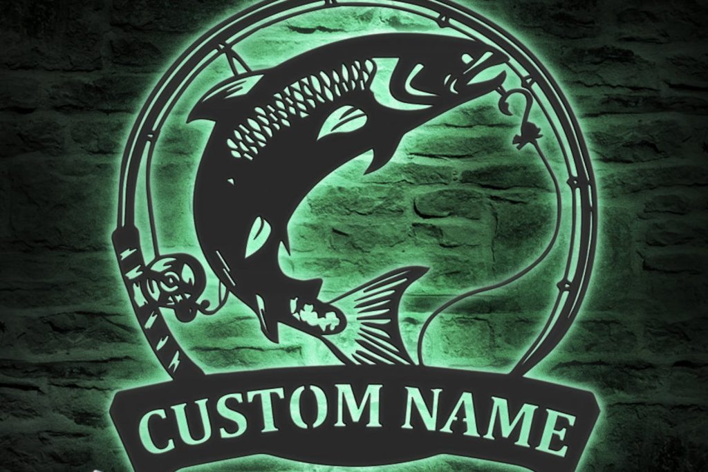 Be the first to review “Atlantic Salmon Fishing Metal Wall Art with LED – Custom Fisher Name Sign”