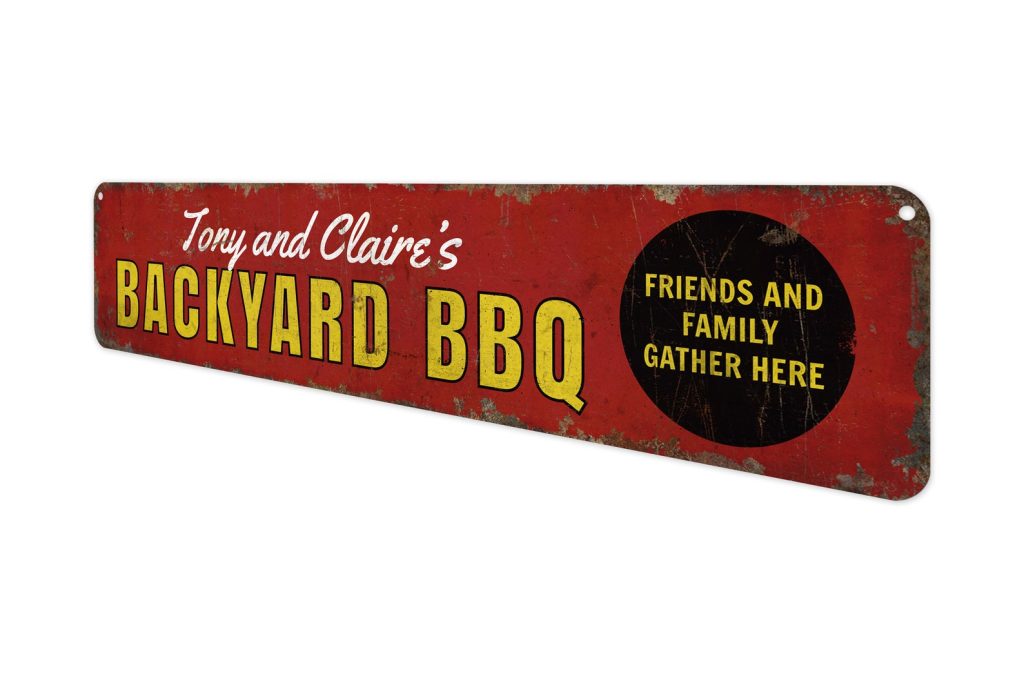 Backyard BBQ Metal Sign – Rustic Friends Gather Decor