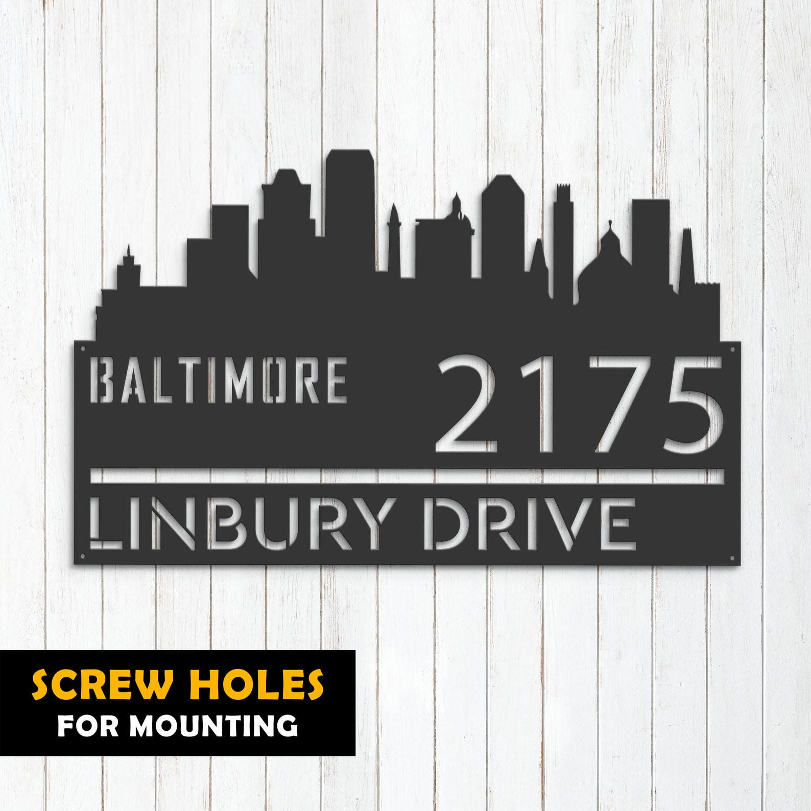 Be the first to review “Baltimore Skyline Address Sign – Personal Metal Plaque”
