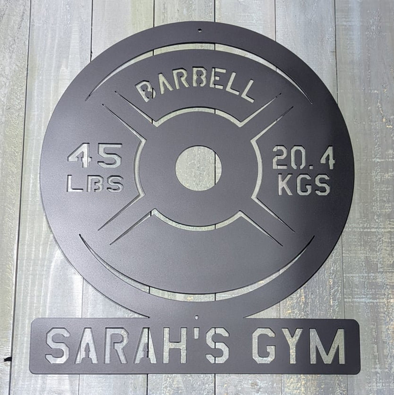 Decorate your workout space with this custom barbell sign! Choose your custom size, color and name for the perfect workout motivation!