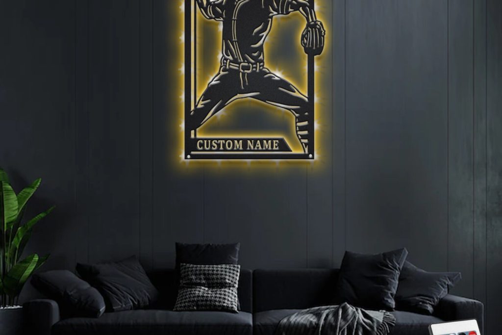 Be the first to review “Baseball Metal Sign with LED, Personalized Player Decor”