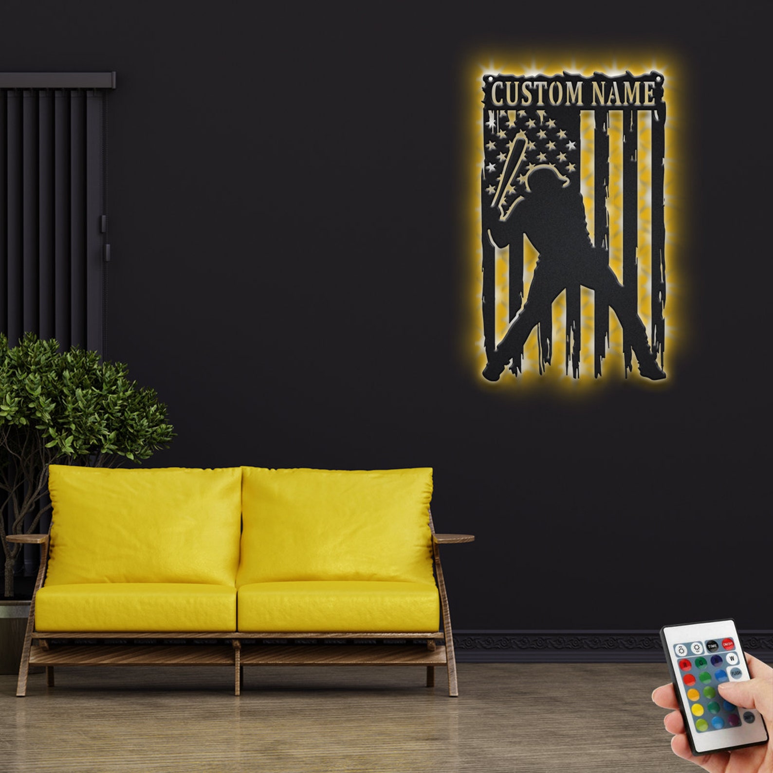 Baseball Player Sign, LED Light, Room Decor