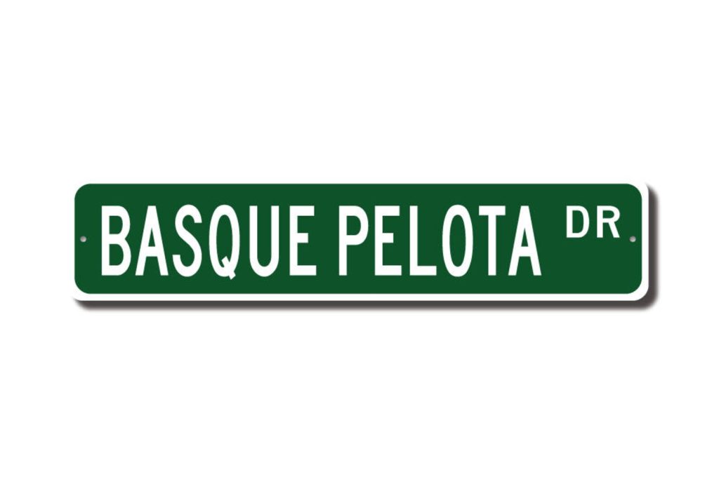 Basque Pelota lovers check out this awesome street sign! This will make the perfect piece for any Basque Pelota fan, or maybe you are a Basque Pelota lover looking for a cool decor piece ! Made of premium aluminum it will stand the test of time. This sign will look great in any room, home den, cave, or office ! Get this sign for your favorite Basque Pelota aficionado !