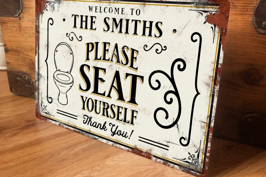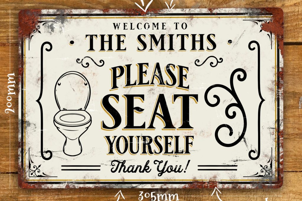 Personalised Bathroom Toilet Metal Sign Wall Door Decor Family WC Accessory Seat Yourself, Vintage Retro Waterproof Aluminium, 200mm x 305mm