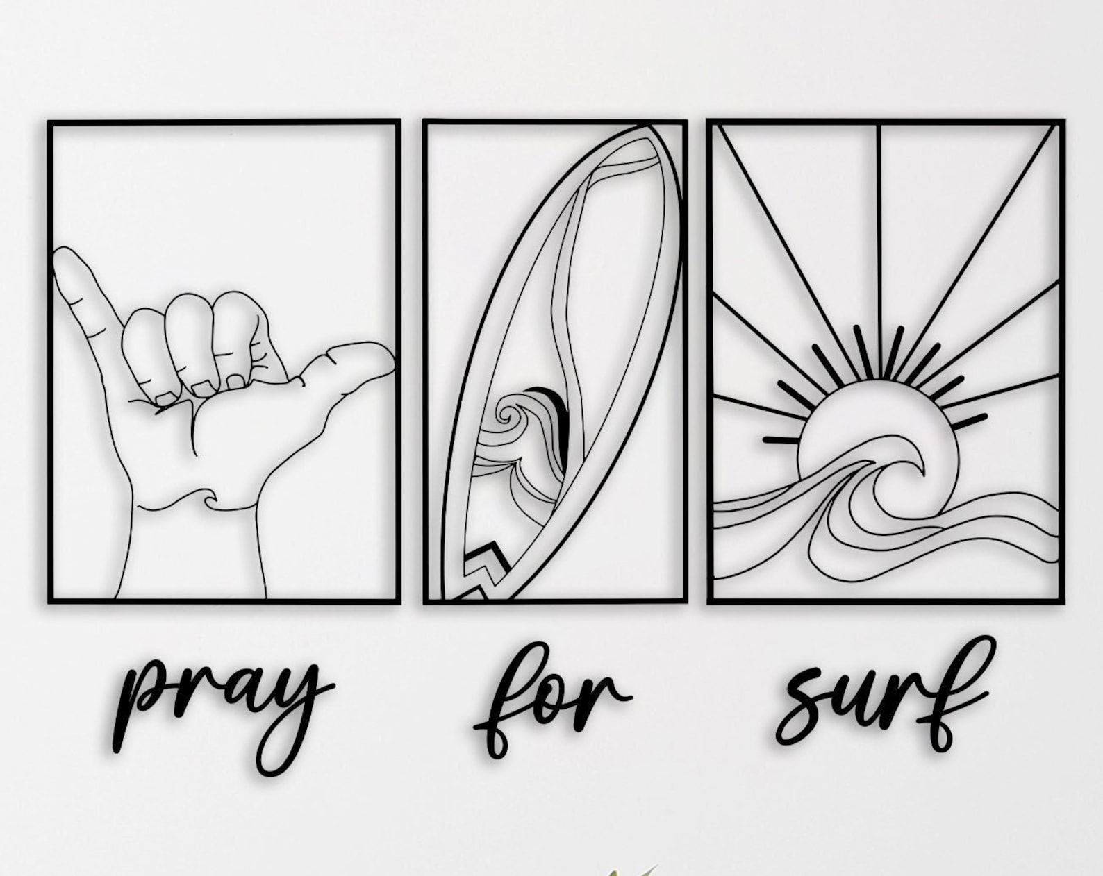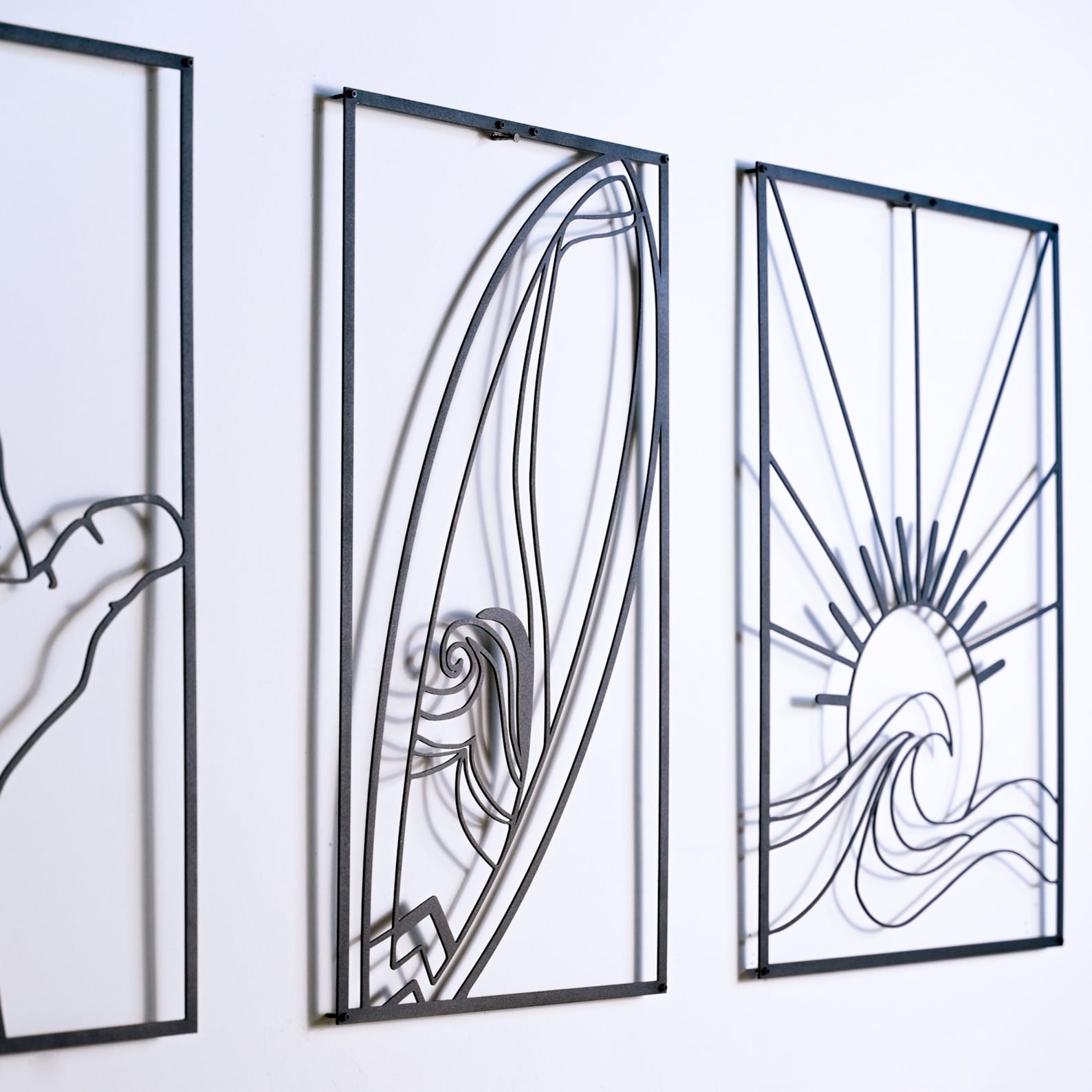 Bring the laid-back vibe of the ocean to your beach house with our surf-themed metal wall decor set, the perfect addition for beach lovers! This set is designed to bring a surf-style touch to your home. This set9;s sleek black finish and metal design make it a flawless and stylish addition to any home decor. Plus, thanks to easy installation, you can quickly enrich your space with coastal charm. Whether you9;re a dedicated surfer or a beach enthusiast, metal wall decor is a must-have for your home. Don9;t wait any longer – bring surf style into your home today!
