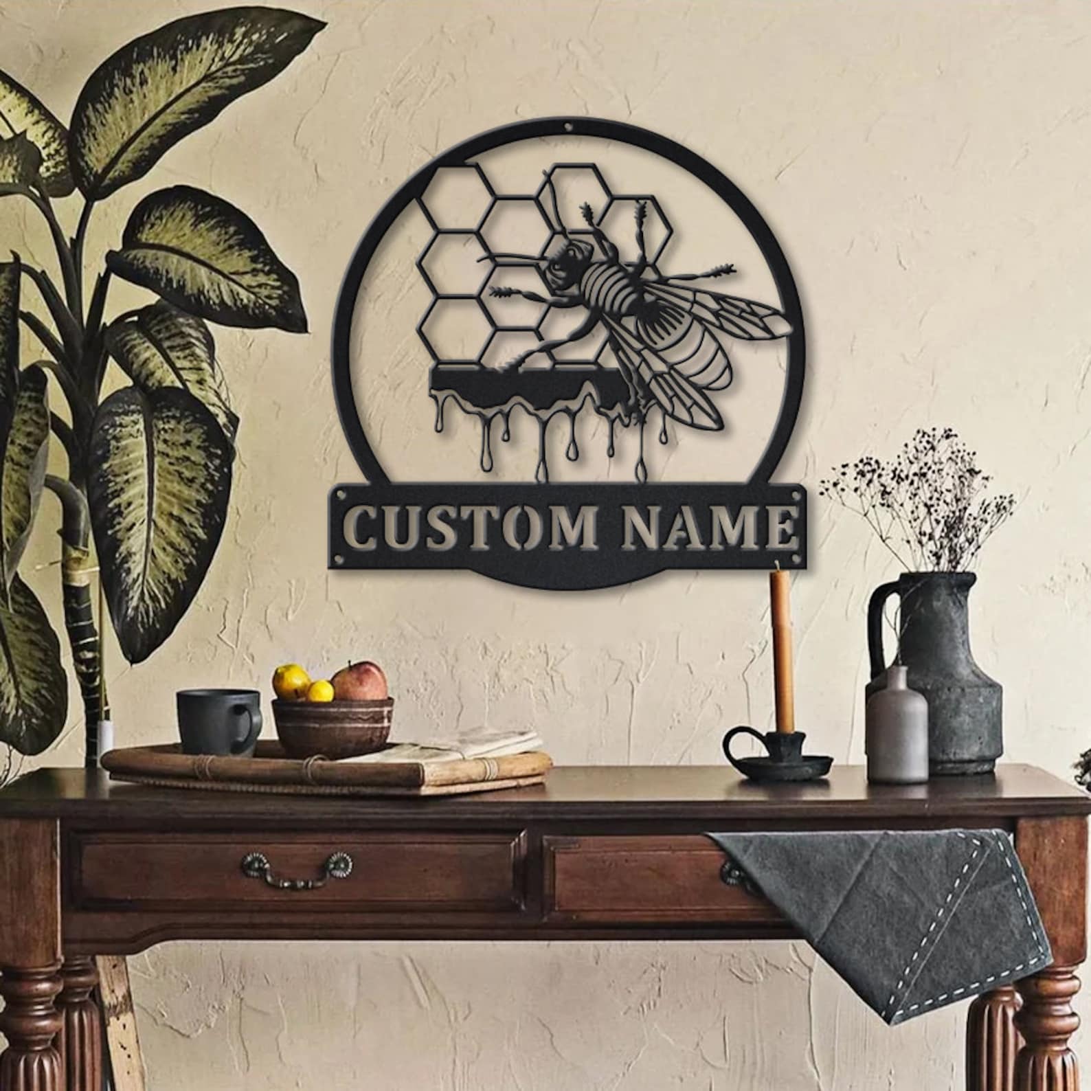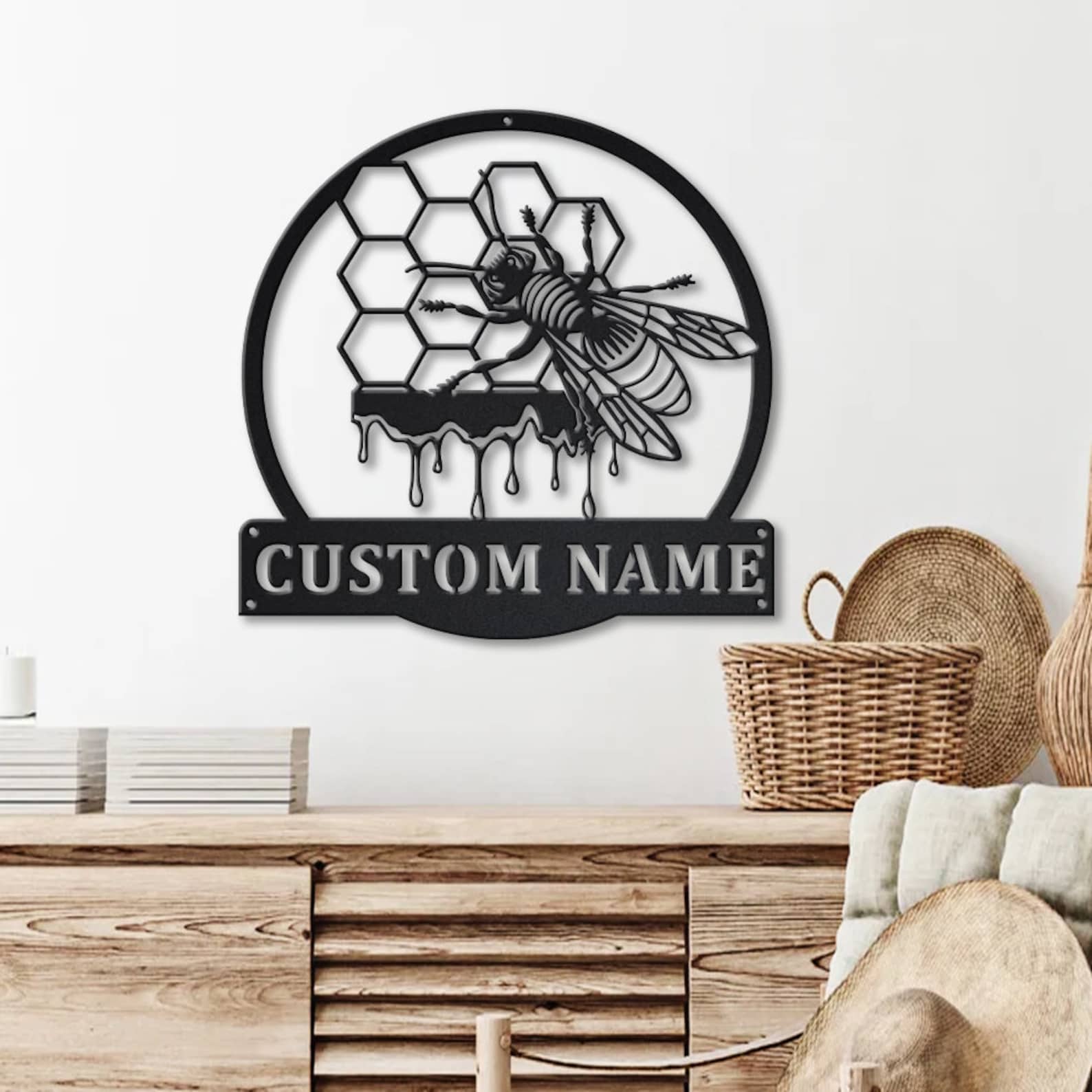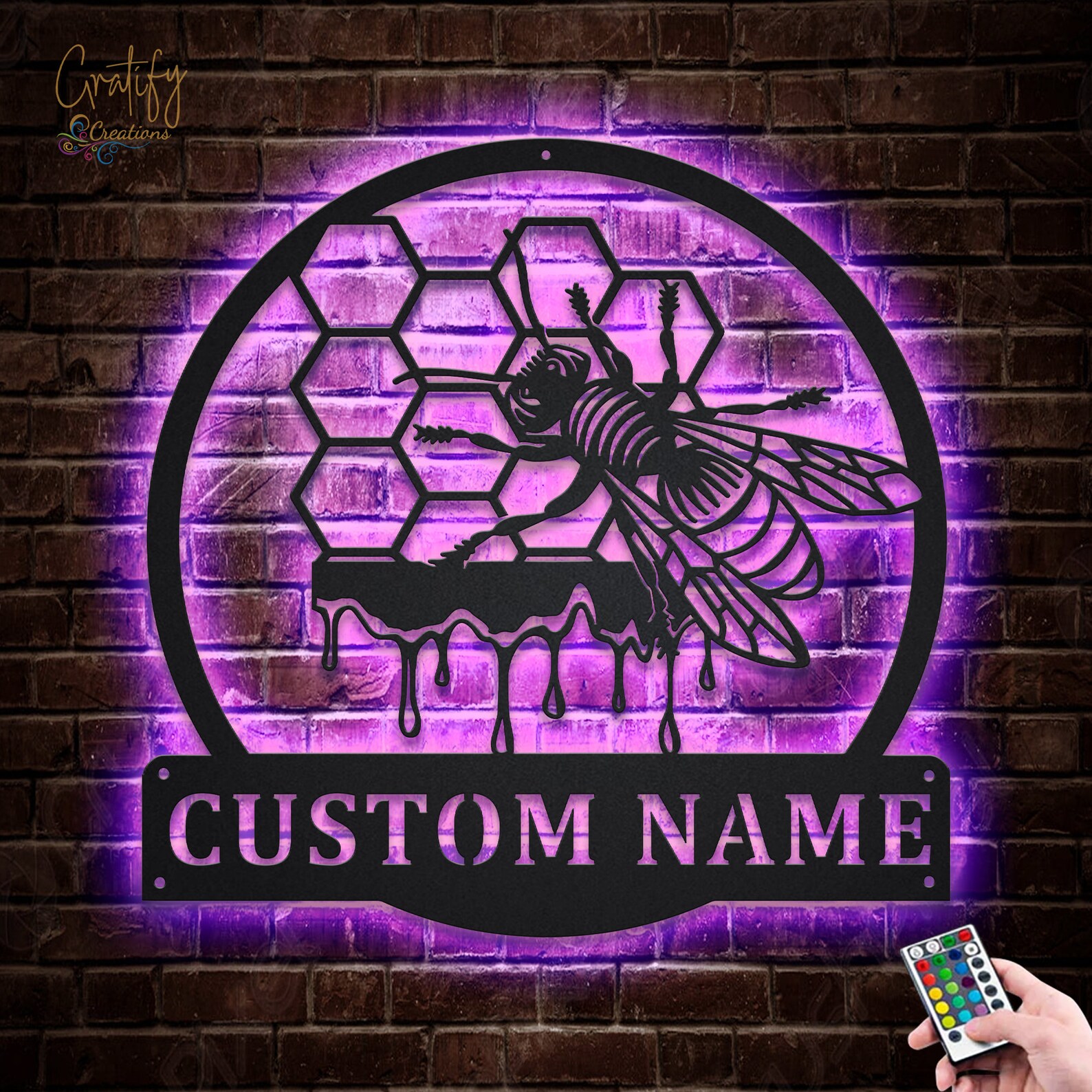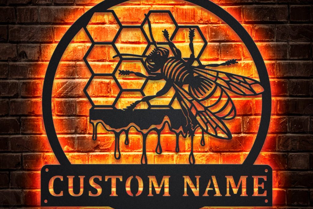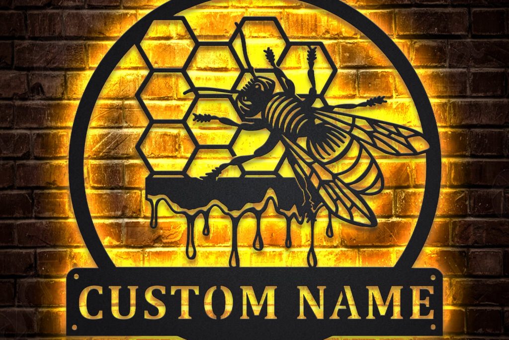 Bee Sign – LED Custom Metal Honeycomb Decor