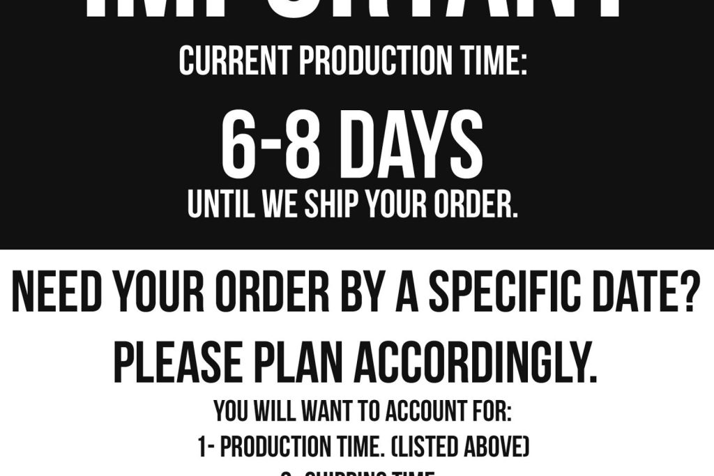 ? Our current production timeline is 6-8 business days from your order date until we ship. Whenever possible, we do try to ship sooner. Once your order has shipped our standard transit time takes approx. 3-7 business days to arrive. You may purchase priority mail shipping upgrade upon checkout to increase your shipping speed to 2-3 days. Note: These estimates are for U.S. based addresses.