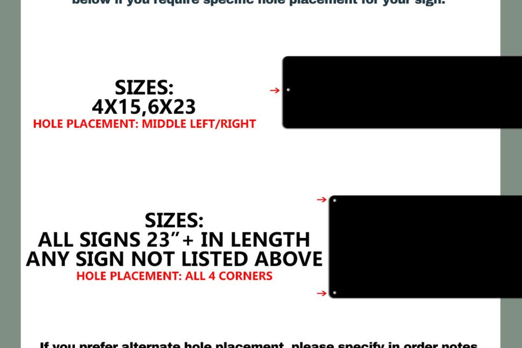 Pre-drilled holes: Hang using zip ties, screws, nuts & washers, sign brackets, rope, etc. Holes will be drilled in all corners unless otherwise specified.