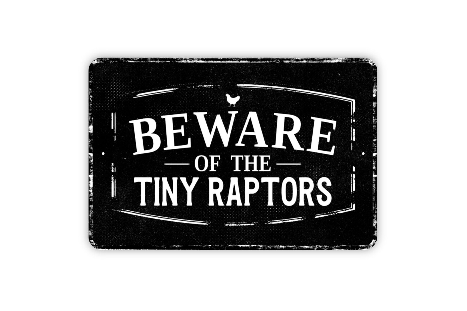 Be the first to review “Beware of Tiny Raptors Sign: Chicken Yard Metal Sign”