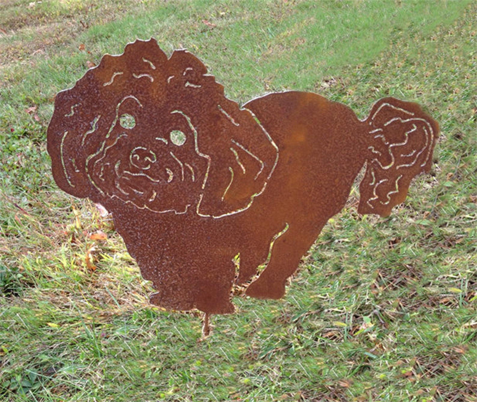 The rust powder coat option a great option for those who like the look of rust but without possible staining or the affects of real rust. The rust powder coat option is a great choice if you are purchasing the Bichon Frise wall hanging or if the pup will be hanging on vinyl or the exterior of home or white fence.