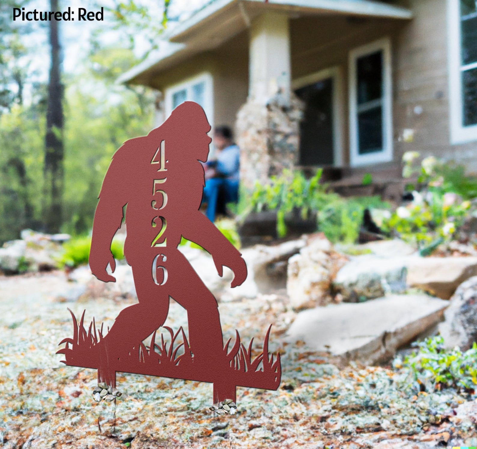 Bigfoot Address Signtsign for YardtSasquatch yetitMetal Street NumbertSign for Groundtwith StakestMountain Cabin decortOutdoor House NumbertSigns for AirBNBtlarge black whitetcopper steel redthousewarming giftthunting camp signs