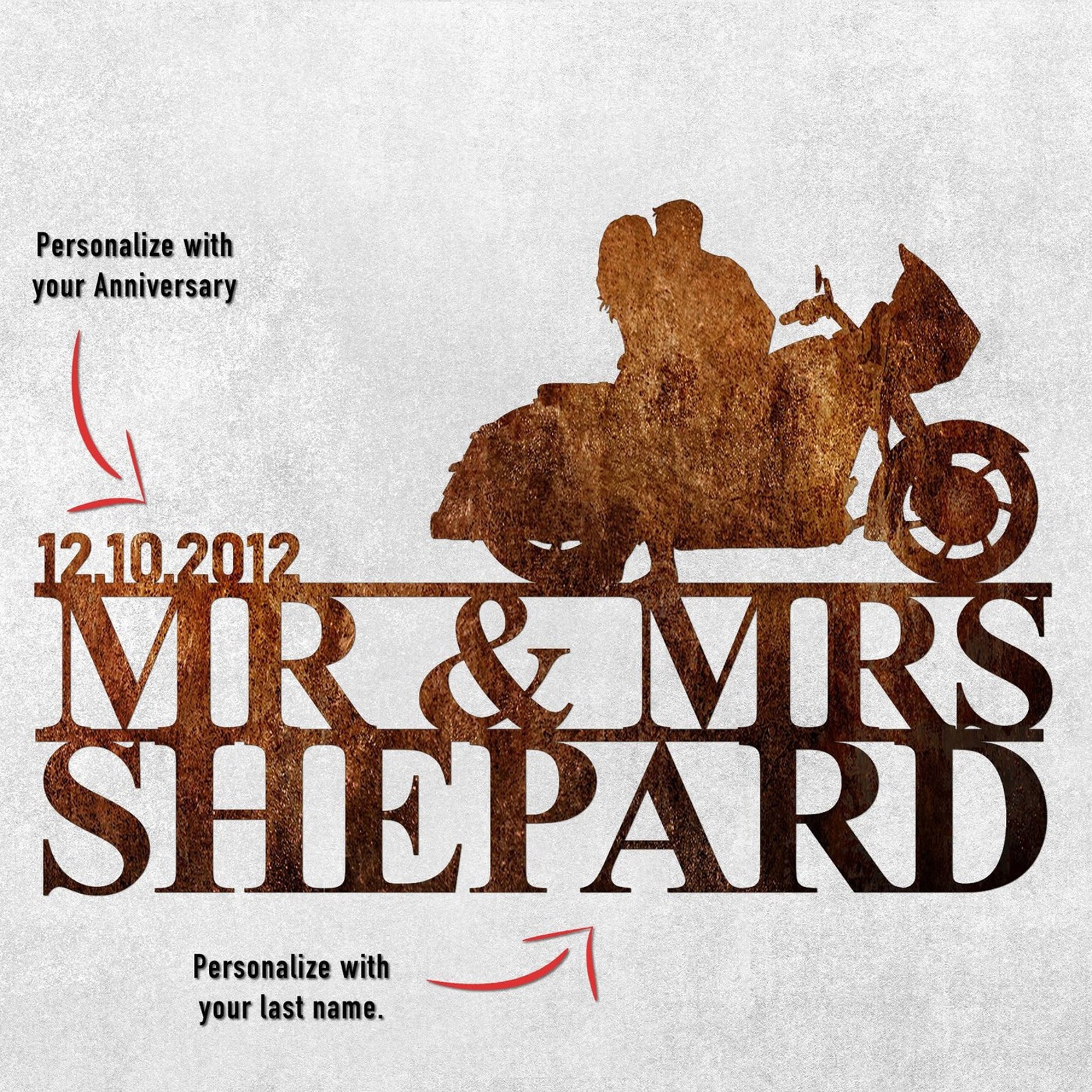 Sweet Ride9;s laser-cut Happily Married Biker Couple Personalized Wall Art brings together your most significantly meaningful bond into a design that truly speaks from the heart, bringing incredible meaning to any wall it adorns.