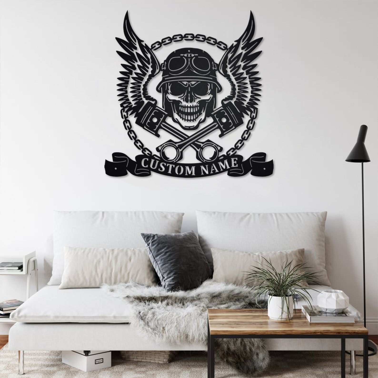 Be the first to review “Biker Skull Art – Wings, Pistons, Personalized”