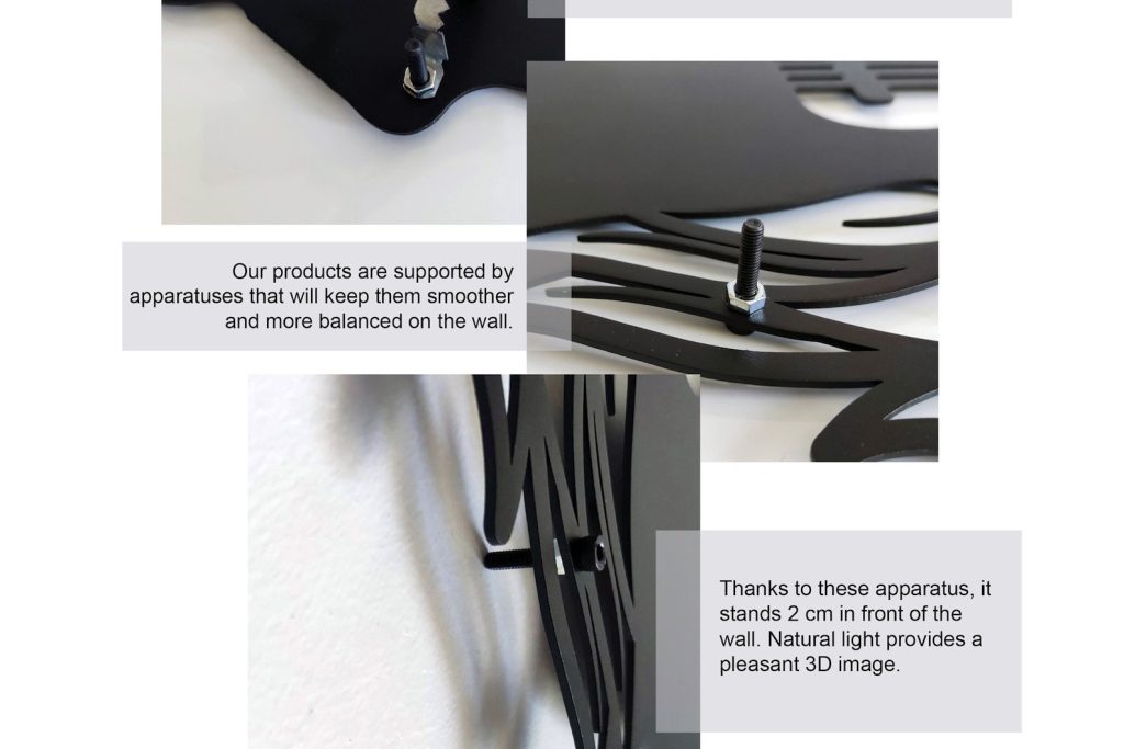 Our products are strong and light. The product, which can be easily hung, does not require an additional assembly process. You can easily hang the product with the hanger on the back of each piece of product.
