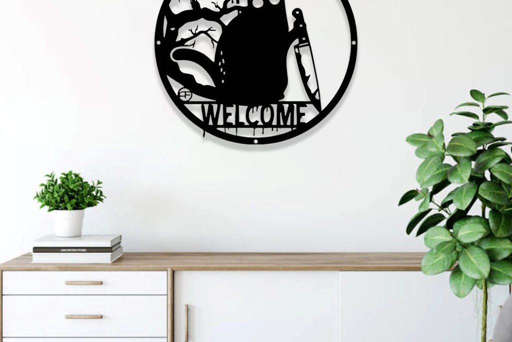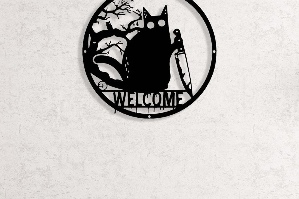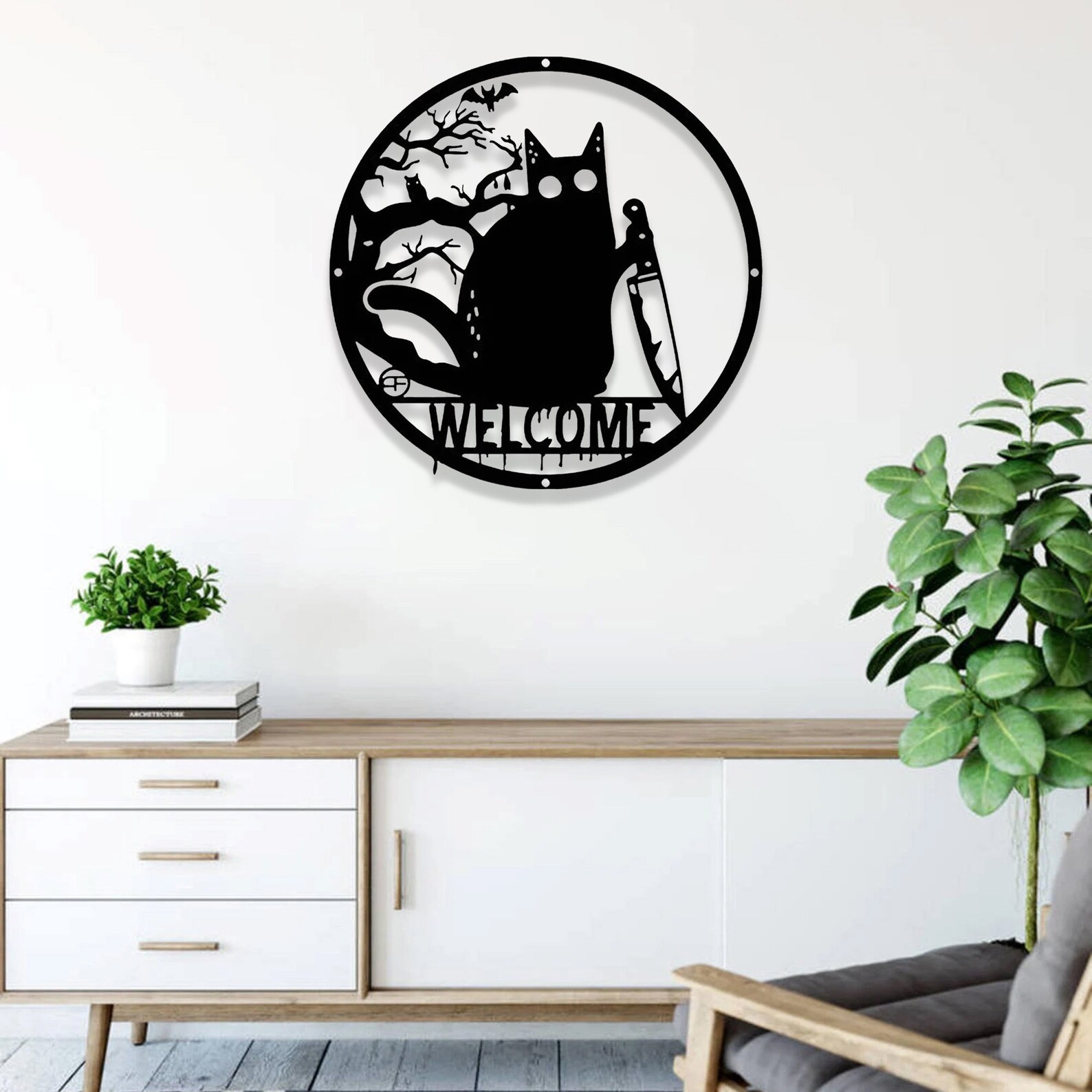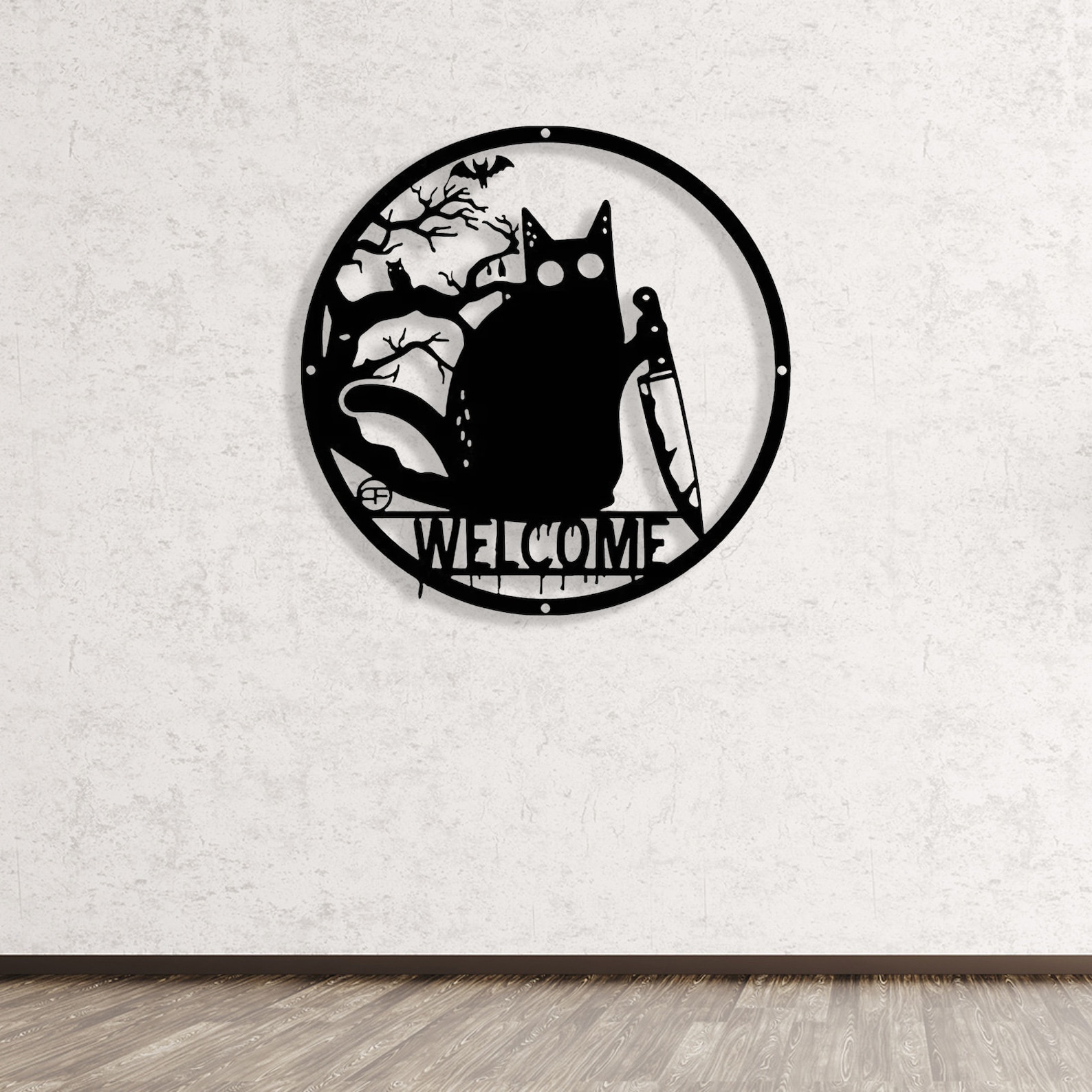 ***Black Cat Spooky Metal Sign | Black Cat Sign | Murderous Cat House Decor | Halloween Decor | Perfect for Halloween | 8-24 Inches***