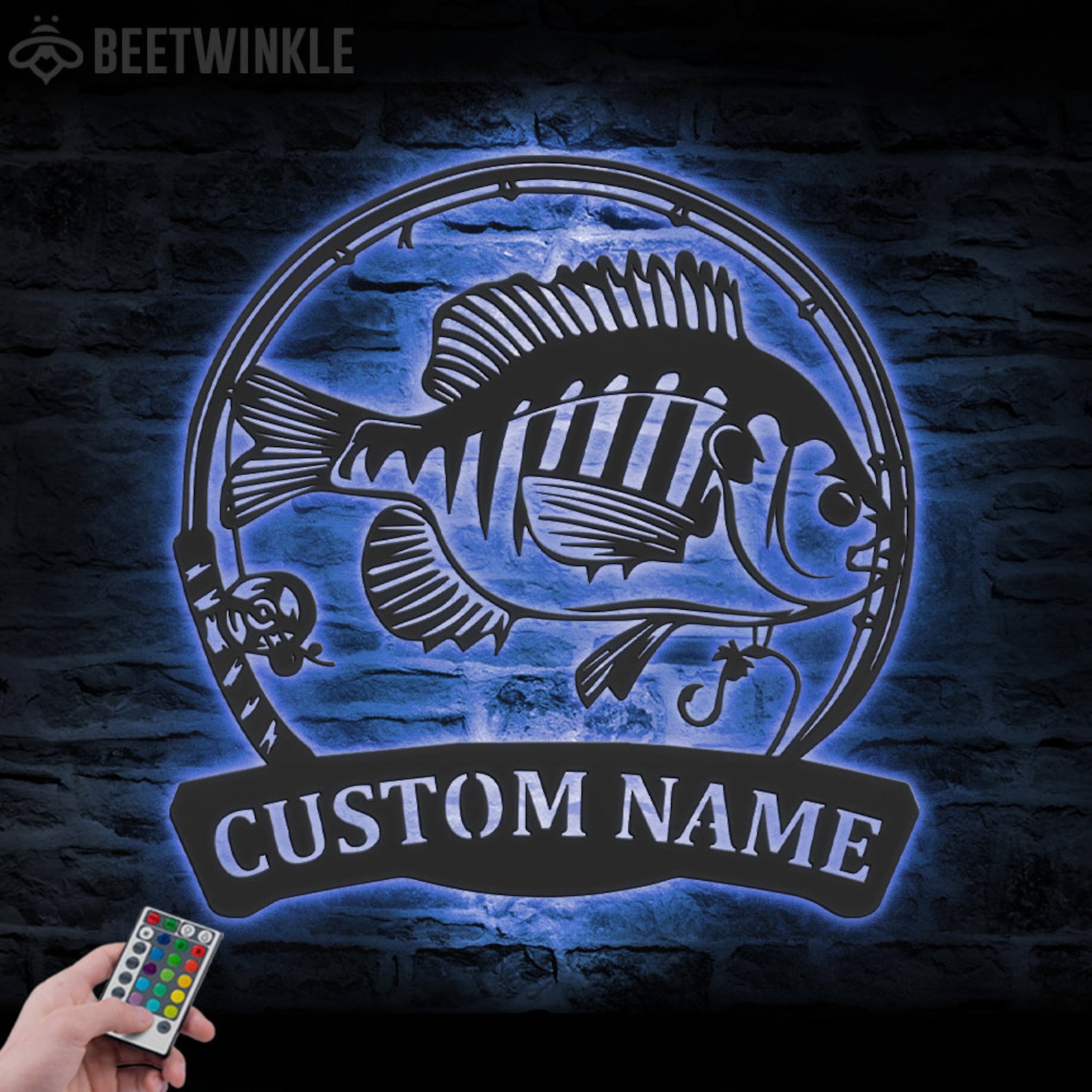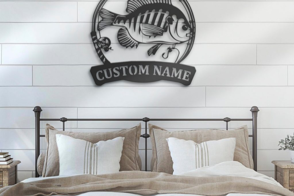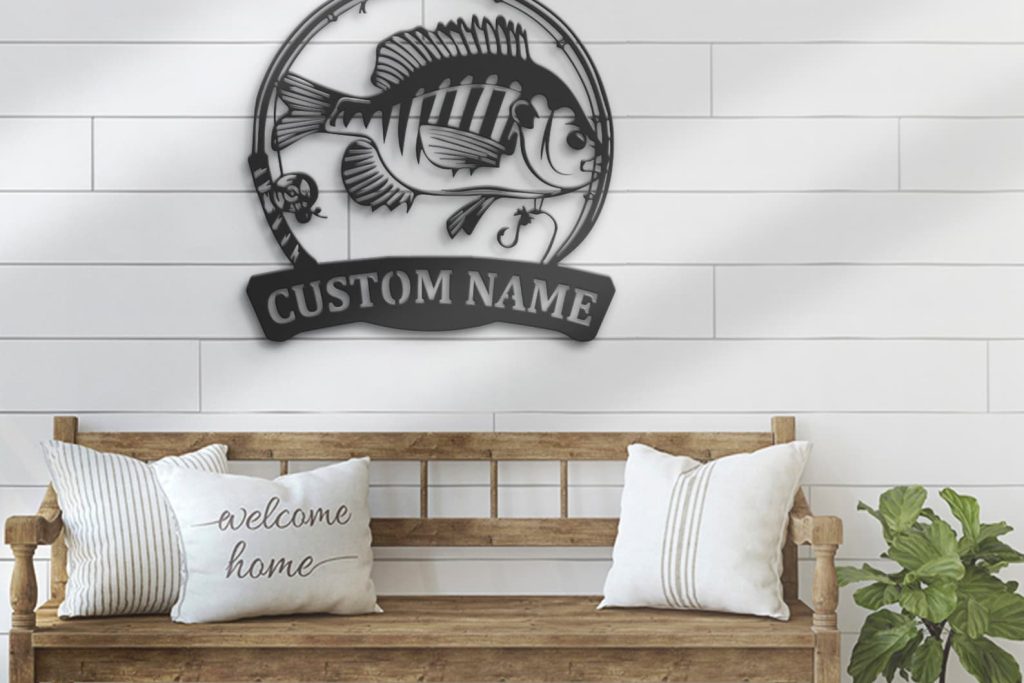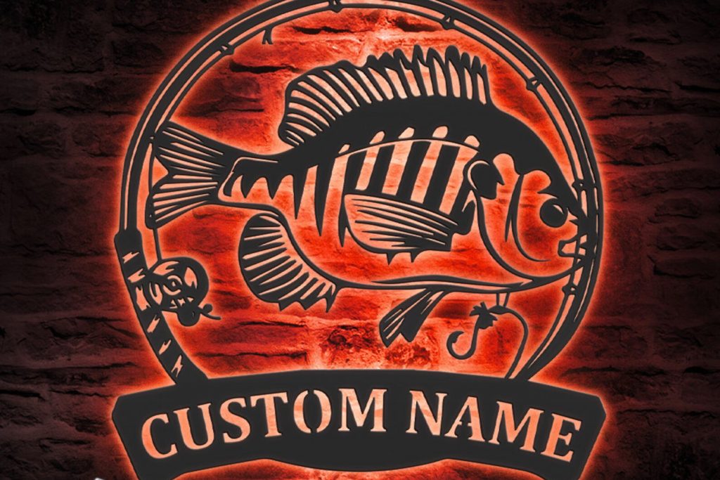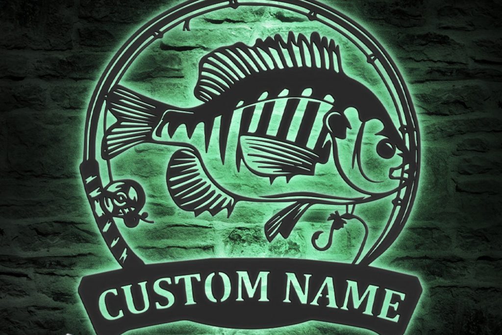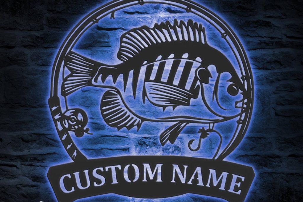 Bluegill Fish Metal Wall Art with LED – Personalized Fishing Name Sign
