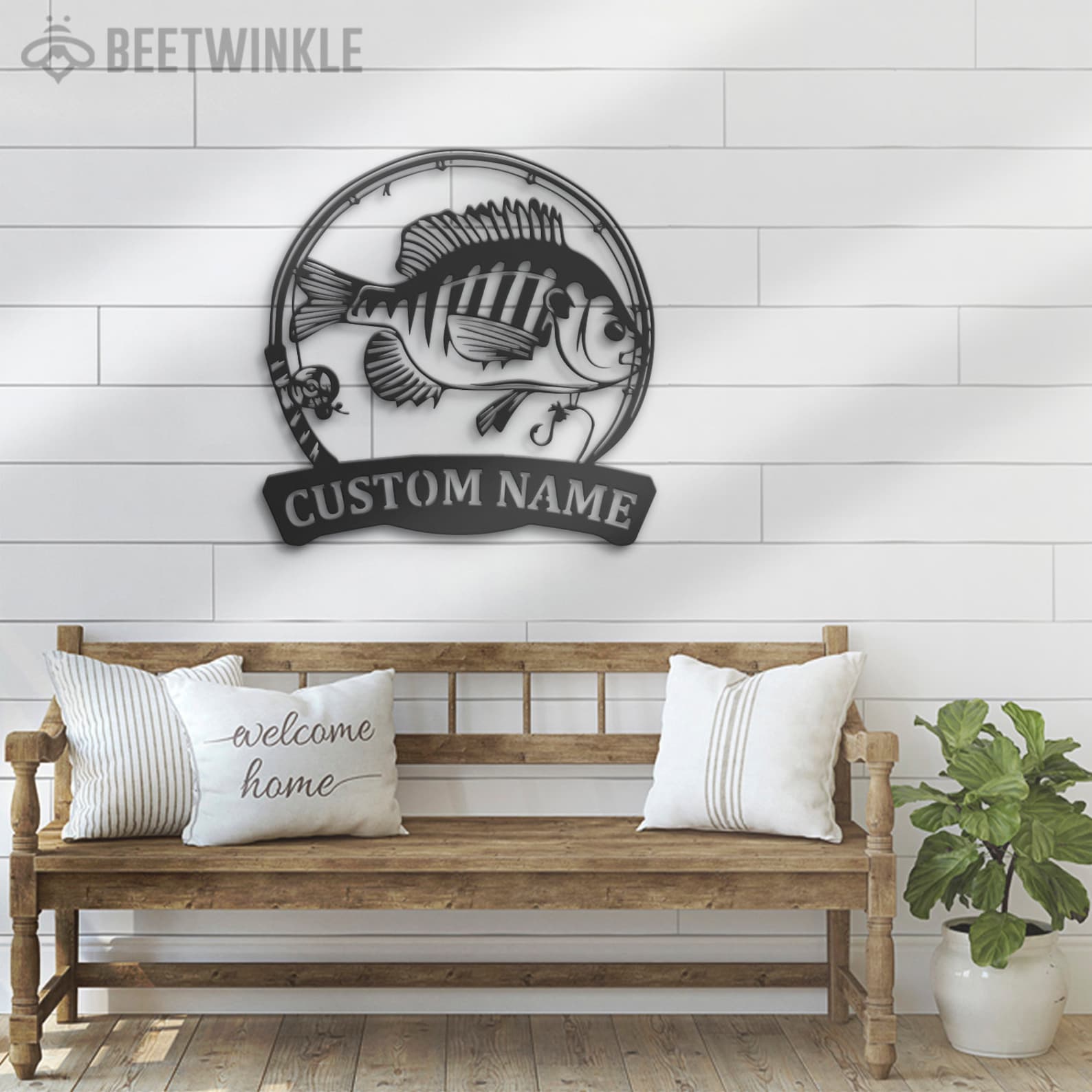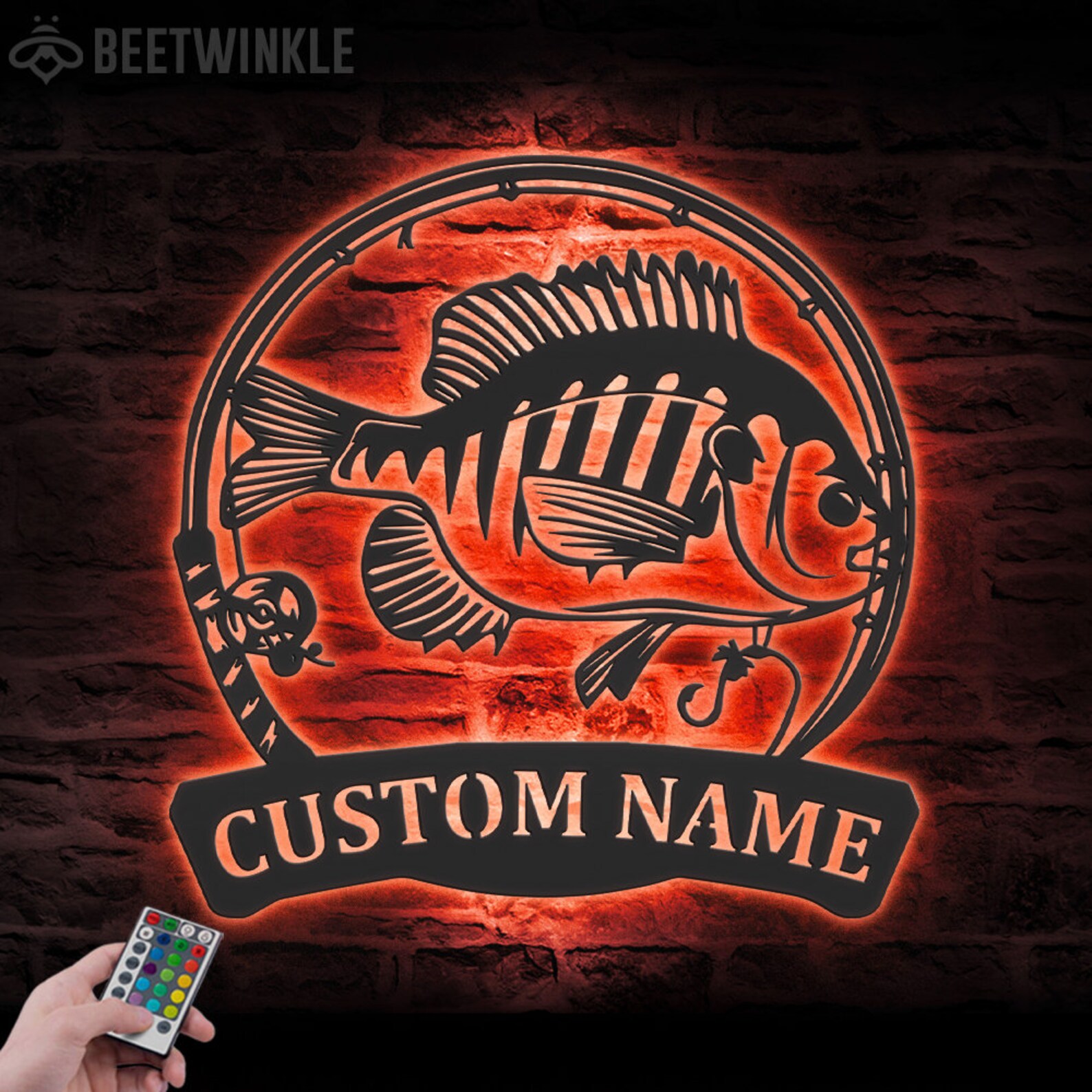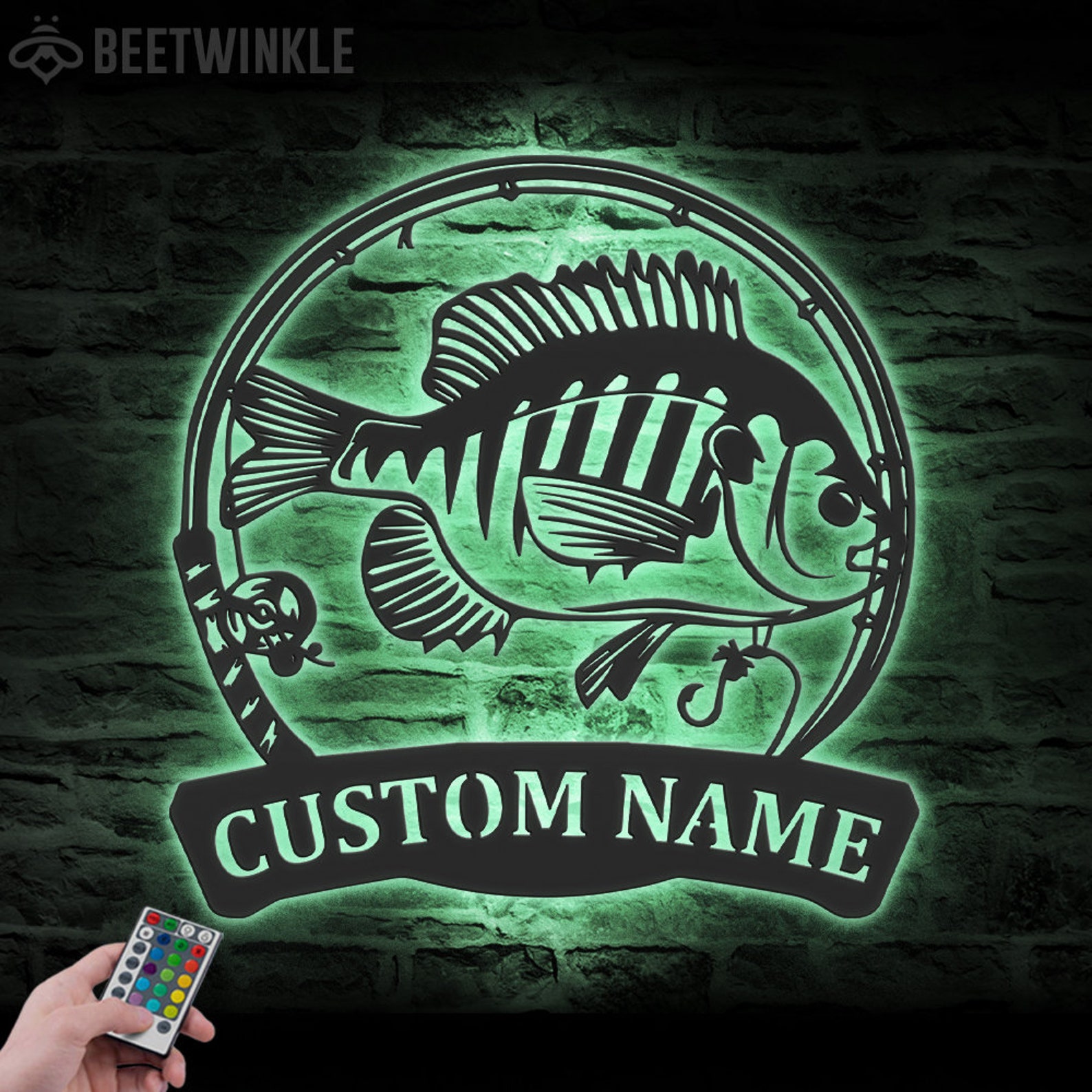 Bluegill Fish Metal Wall Art with LED – Personalized Fishing Name Sign