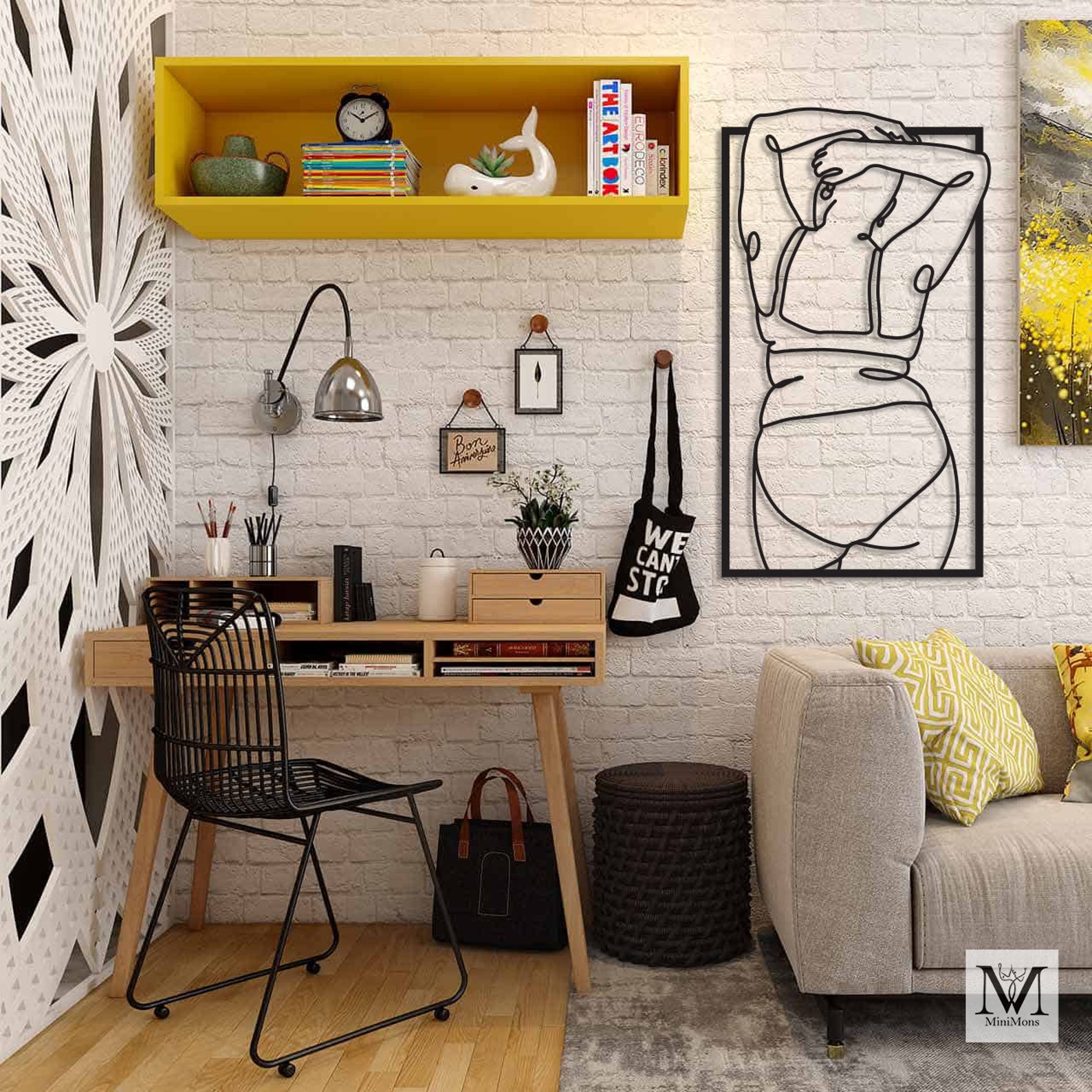 3D SHADOW EFFECT: This Woman Middle Finger Line Art casts a beautiful shadow because it stays 2 cm away from the wall by elevation screws. The shadows create a cool three-dimensional feel that makes this metal wall decor something that all your friends and family will talk about and love. When placed in natural light, the shadow of the Woman Middle Finger Line Art tends to move around the art throughout the day, which makes the art fun to watch.