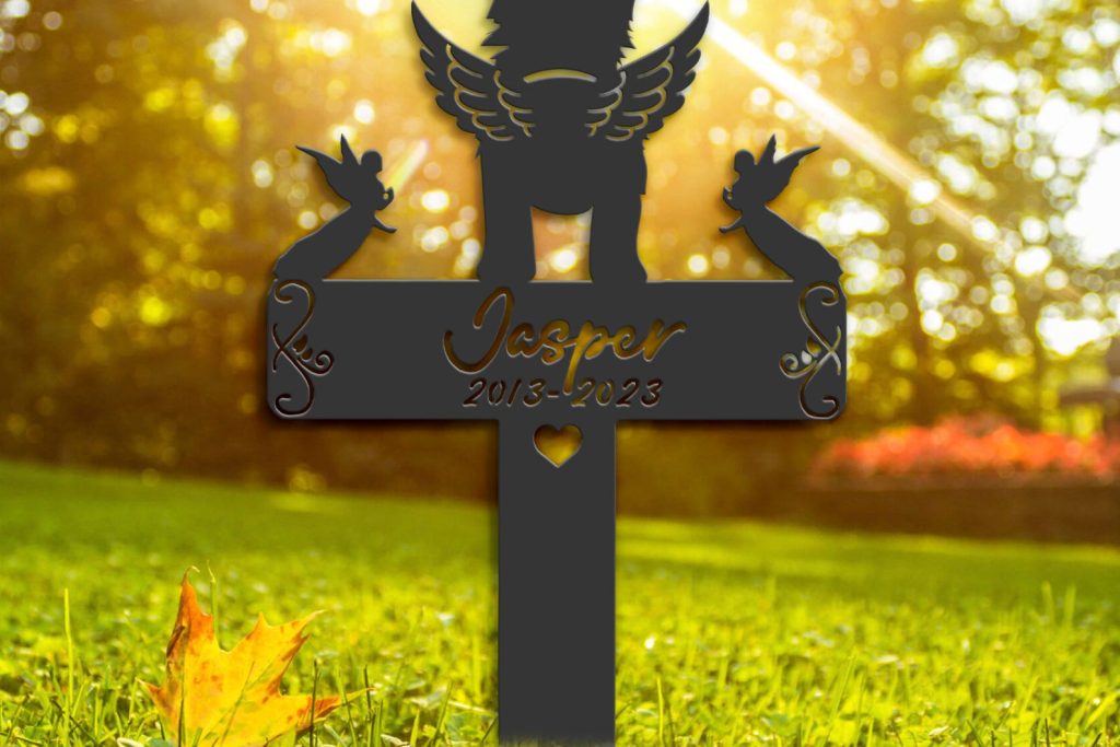 Border Collie Memorial Stake – Custom Metal Angel Wing Sign
