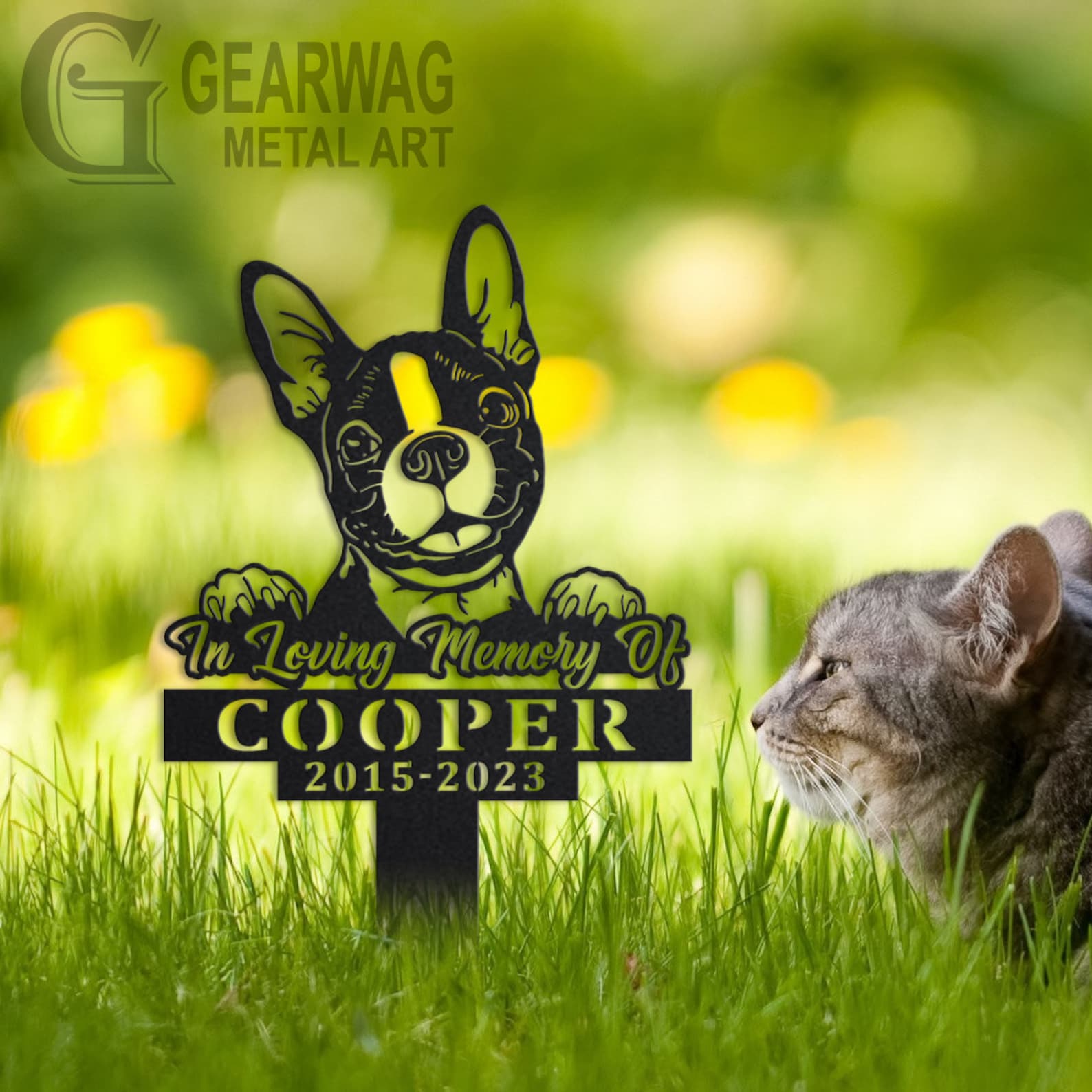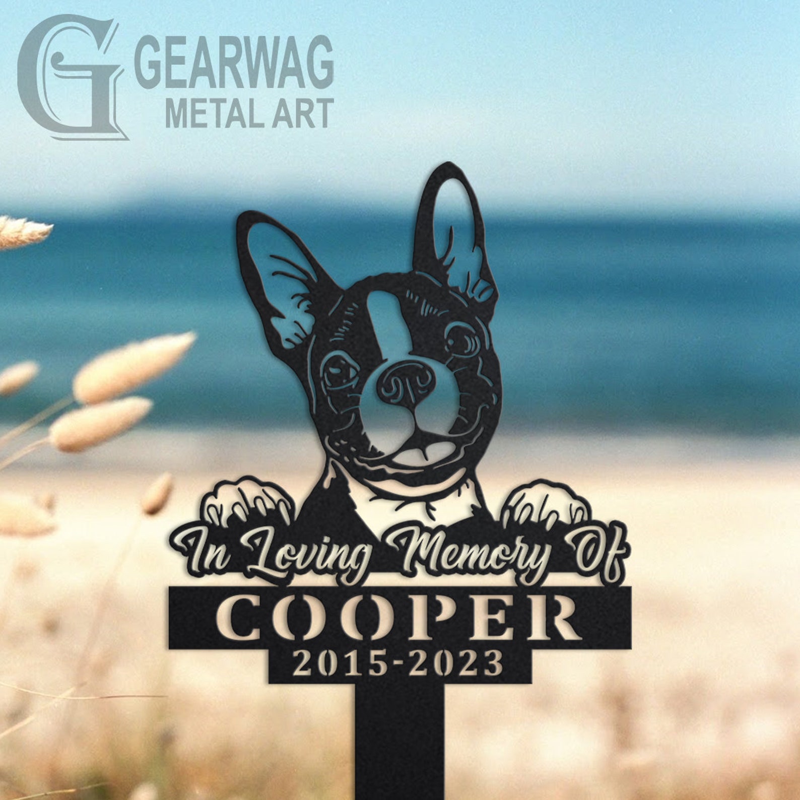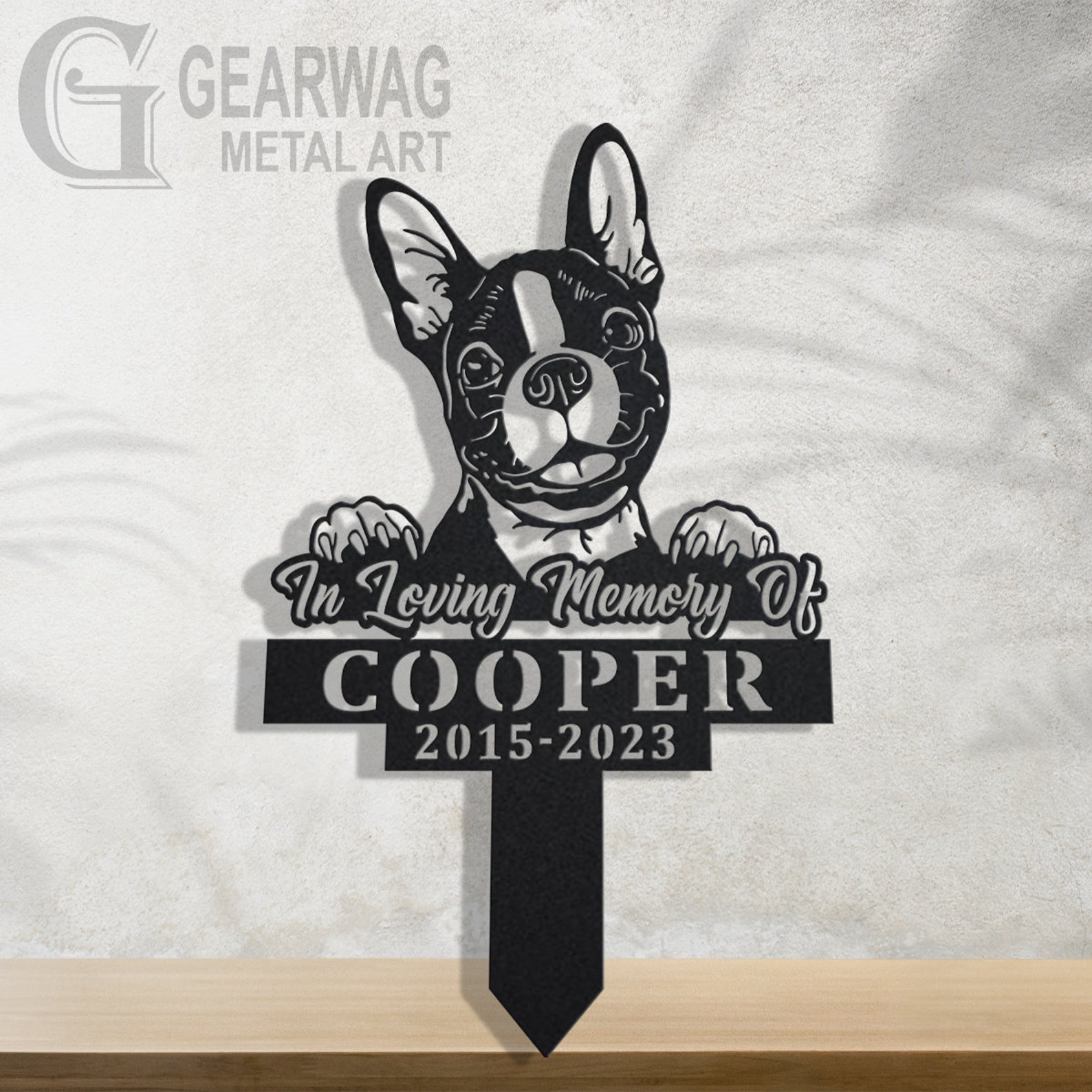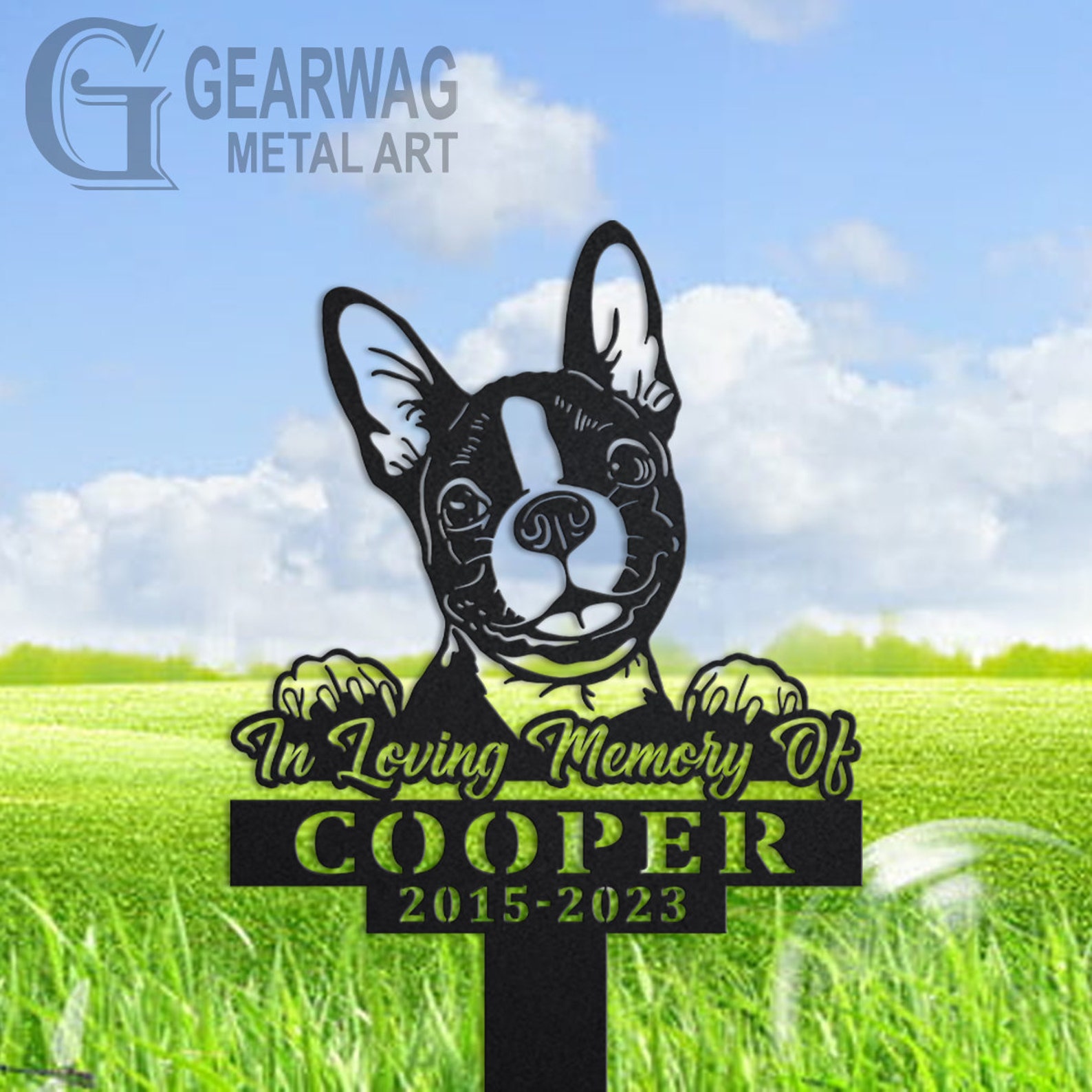 Boston Terrier Memorial Stake – Custom Metal Pet Sign