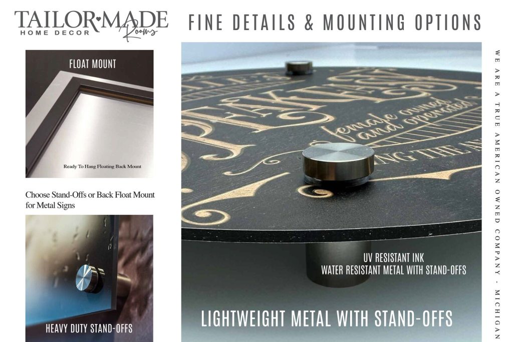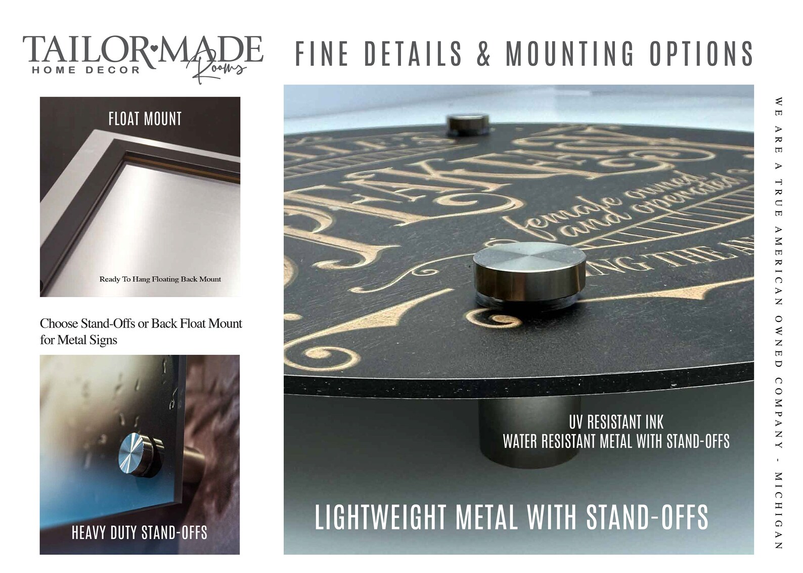 4-6 Metal Stand-offs incl for mounting, 8 for largest signs