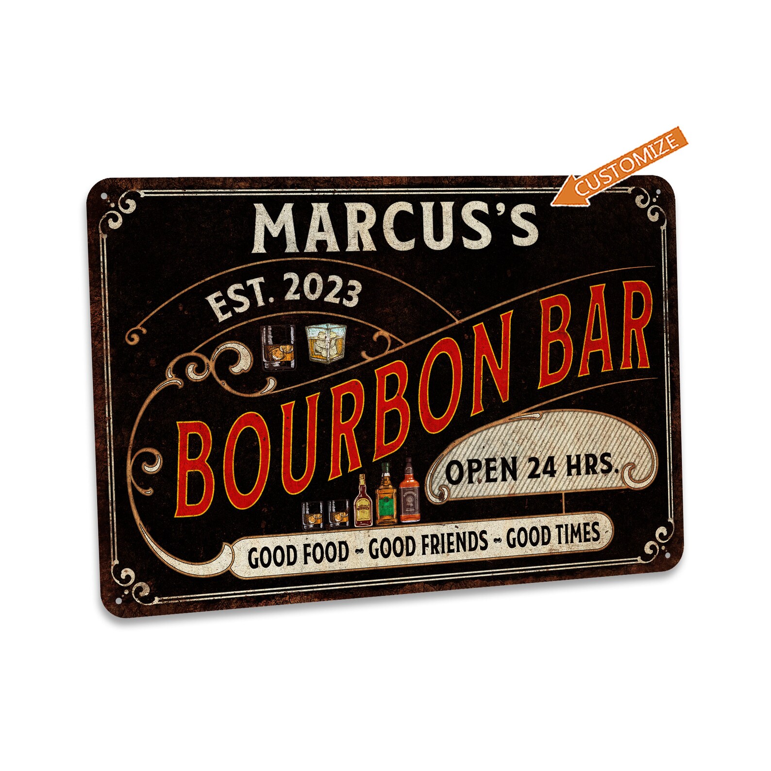 Custom Bourbon Bar Sign Personalized Metal Sign For Home Bar Vintage Bar Sign Tavern Sign Home Pub Gift For Dad Whiskey Lover 108122002166