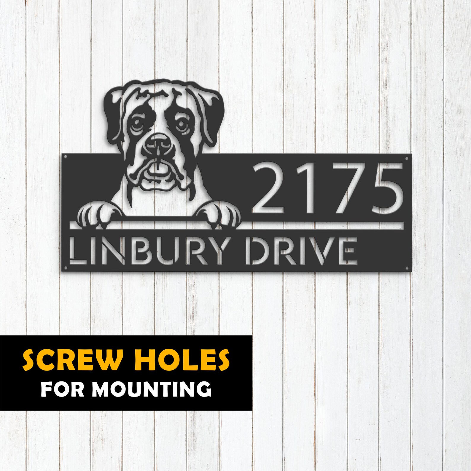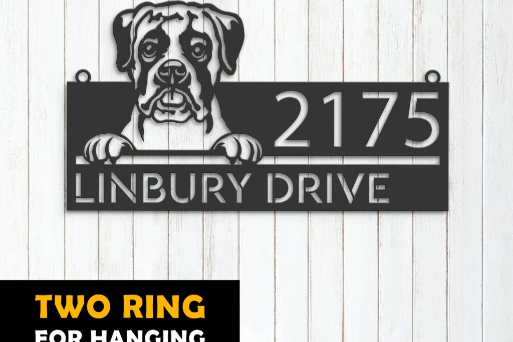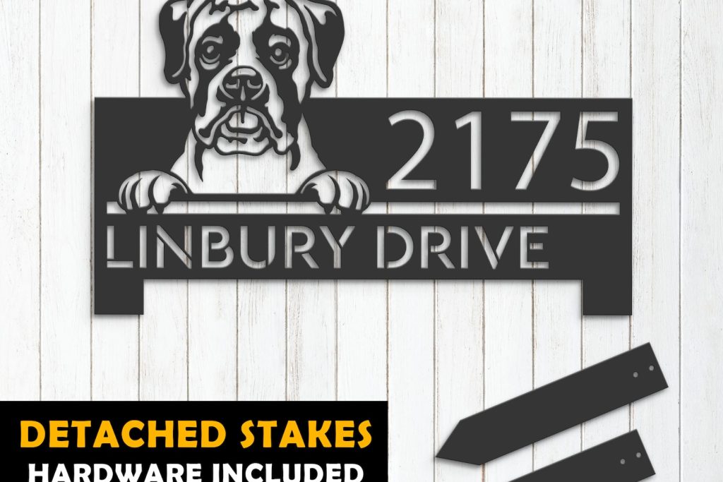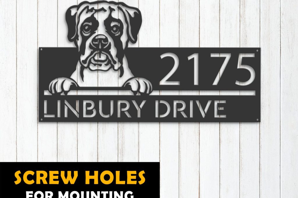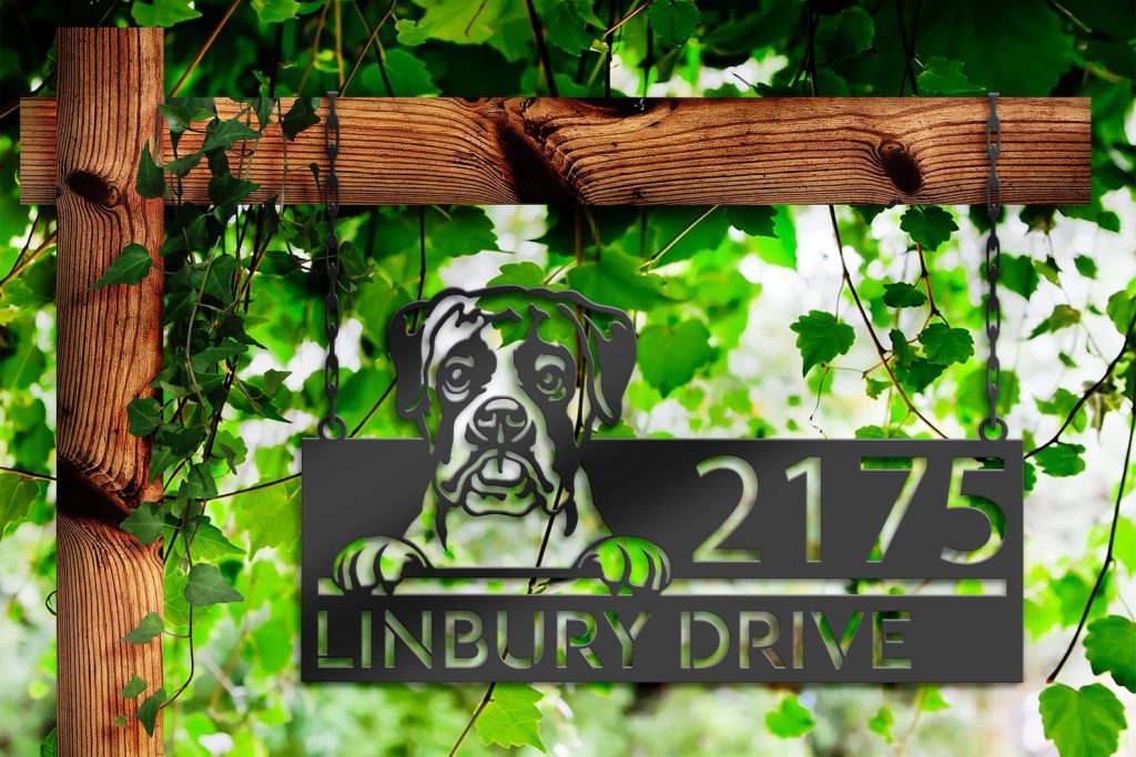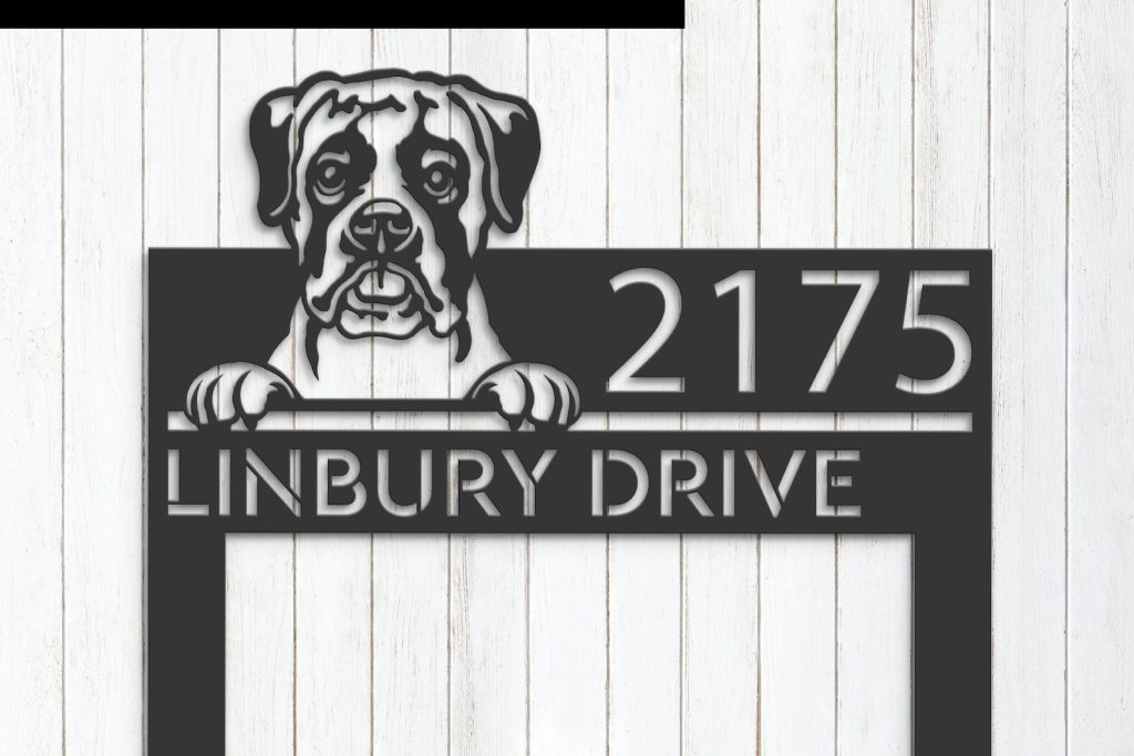 Boxer Puppy Metal Address Sign for Outdoor Use
