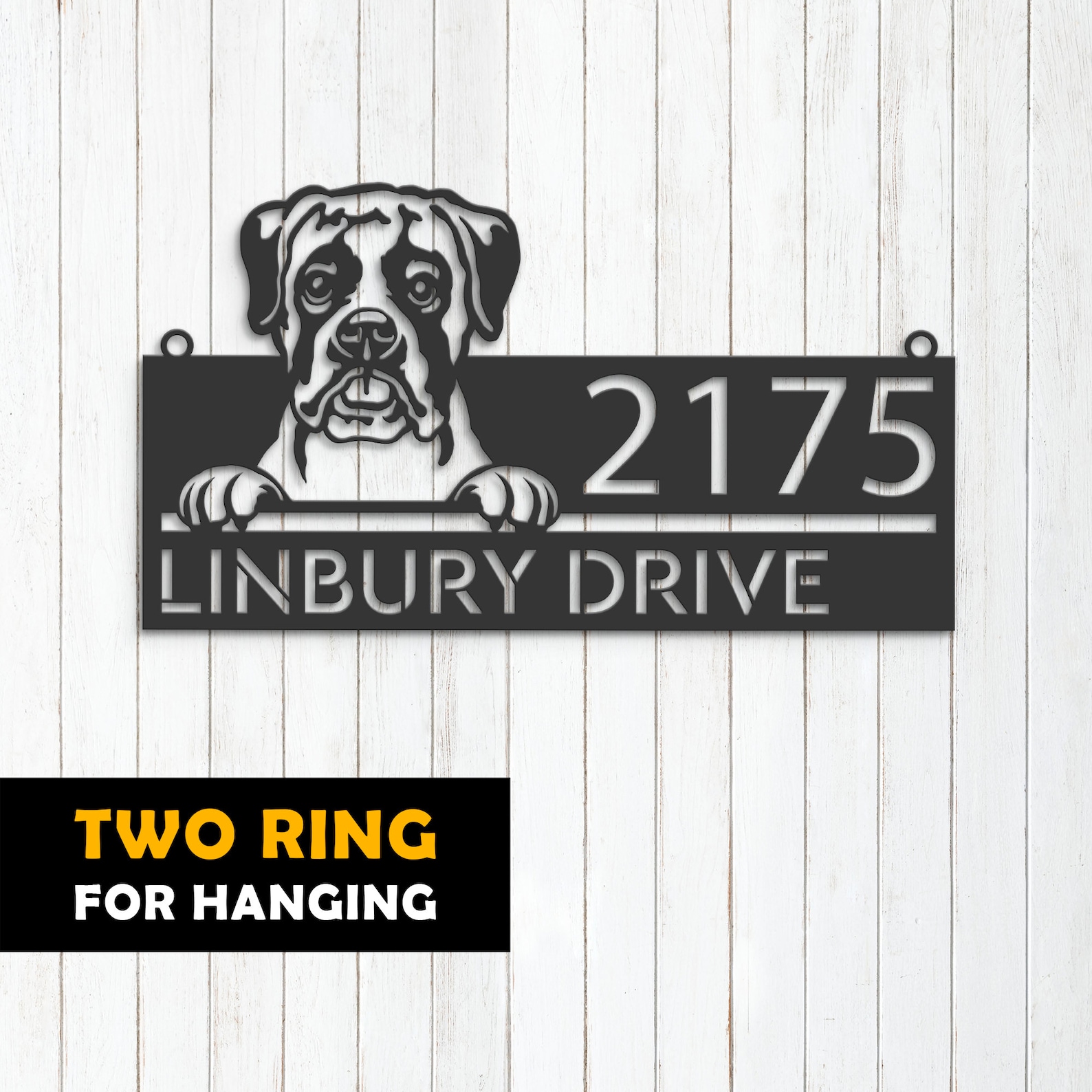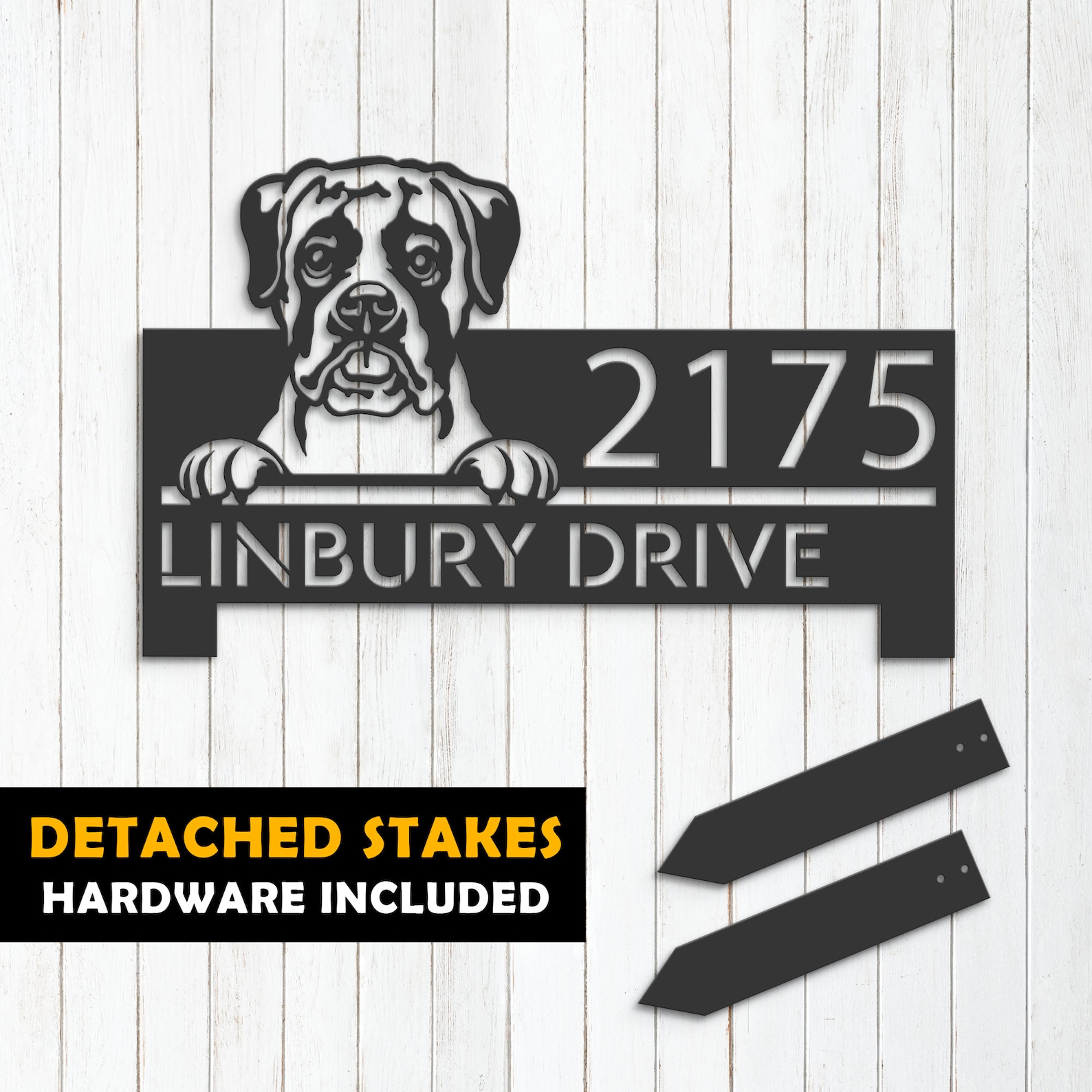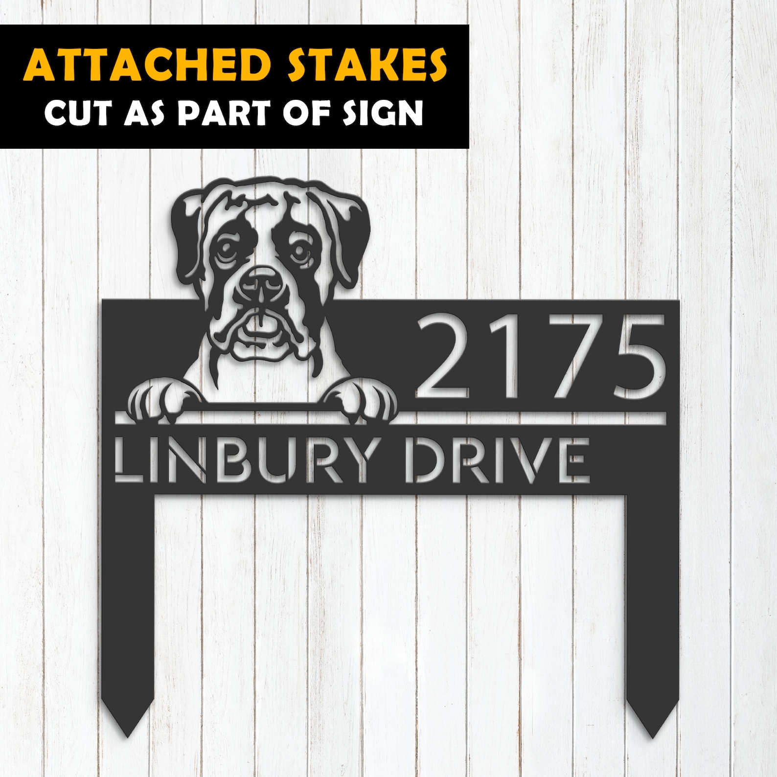 Boxer Puppy Metal Address Sign for Outdoor Use